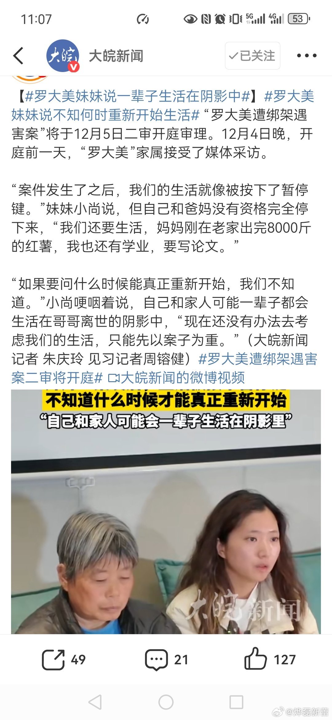 杀害罗大美主犯为立功揭发他人犯罪【罗大美妹妹含泪喊话哥哥再等等】网红罗大美遗体已在太平间两年多怎么释怀啊,一辈子都释怀不了吧。妹妹还是要带着母亲和父亲走出痛苦,不要接受采访,媒体也别采访了,这等于给他们伤口撒盐,采访一次,让他们回忆一次,把一切交给司法机关,要相信办案部门,相信法治,正义不会缺席。 媒体不要渲染,证据和事实是定罪量刑的关键,要相信法治,