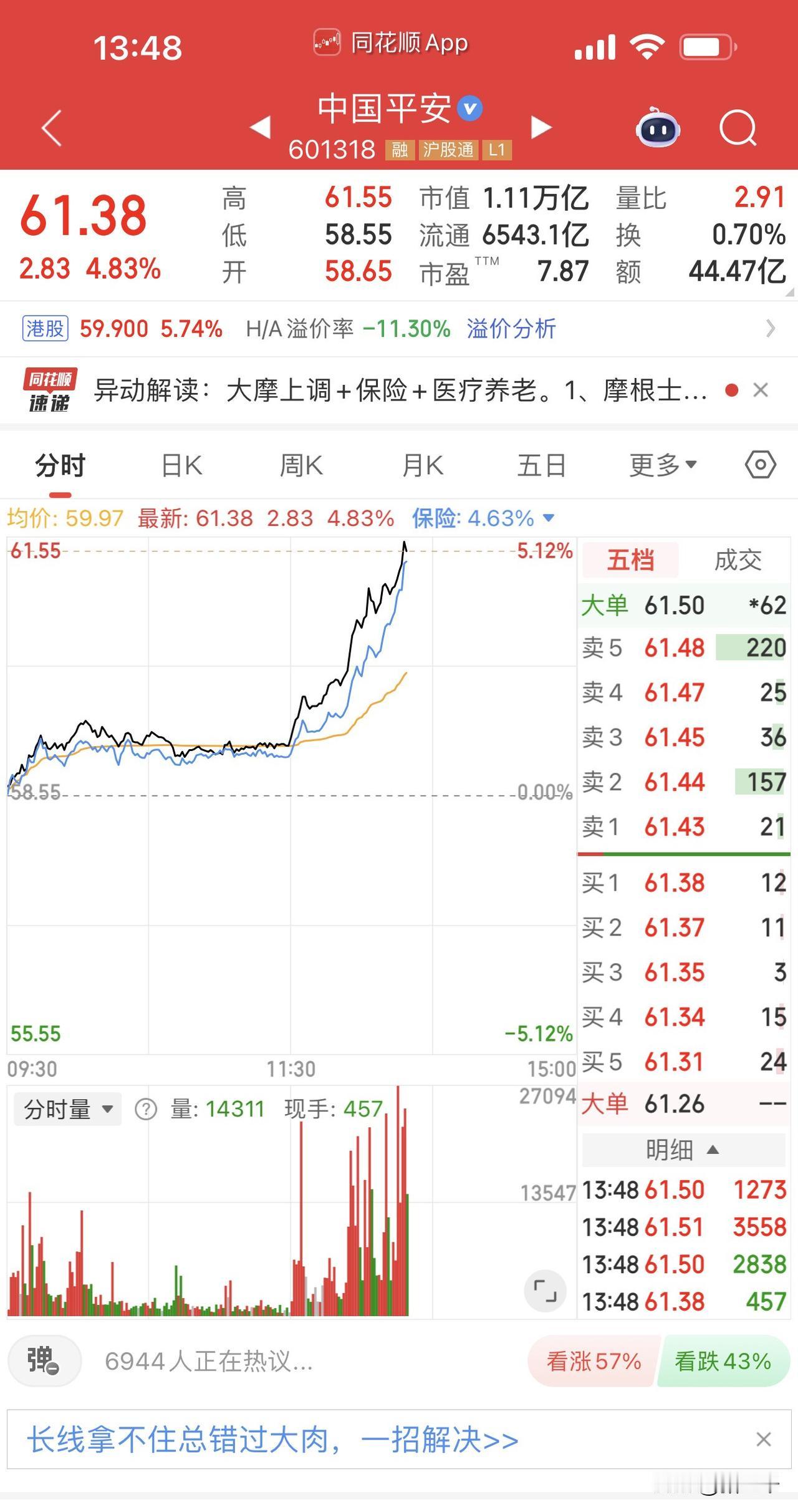 保险板块大涨, 沪指再次剑指3900点! 消息面上, 摩根士丹利将中国平安列入重点关注名单, 港湖目标价89港元、A股85元! 保险股估值比银行还便宜, 业绩却是中高位增长, 显然保险的性价比开始大过银行。 令人愤慨的是, 内资就没有一家机构能点火的, 每次都要这些顶级投行站出来引导。 这是非常悲哀的, 什么时候内资能丢掉依赖独立行走? 哎!
