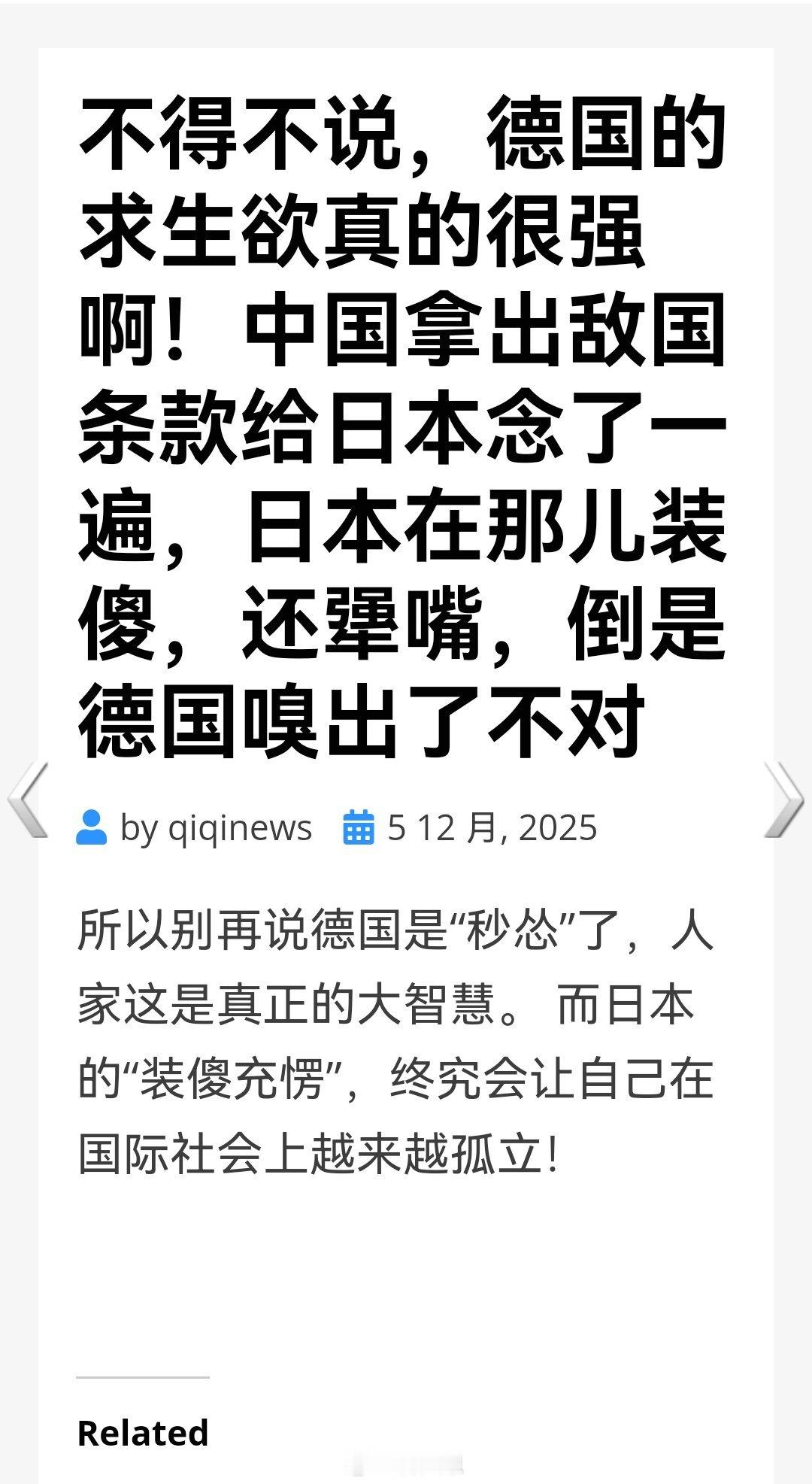 德国的求生欲真的很强啊!中国拿出敌国条款给日本念了一遍,日本在那儿装傻,还犟嘴,倒是德国嗅出了不对。海外新鲜事何天恩