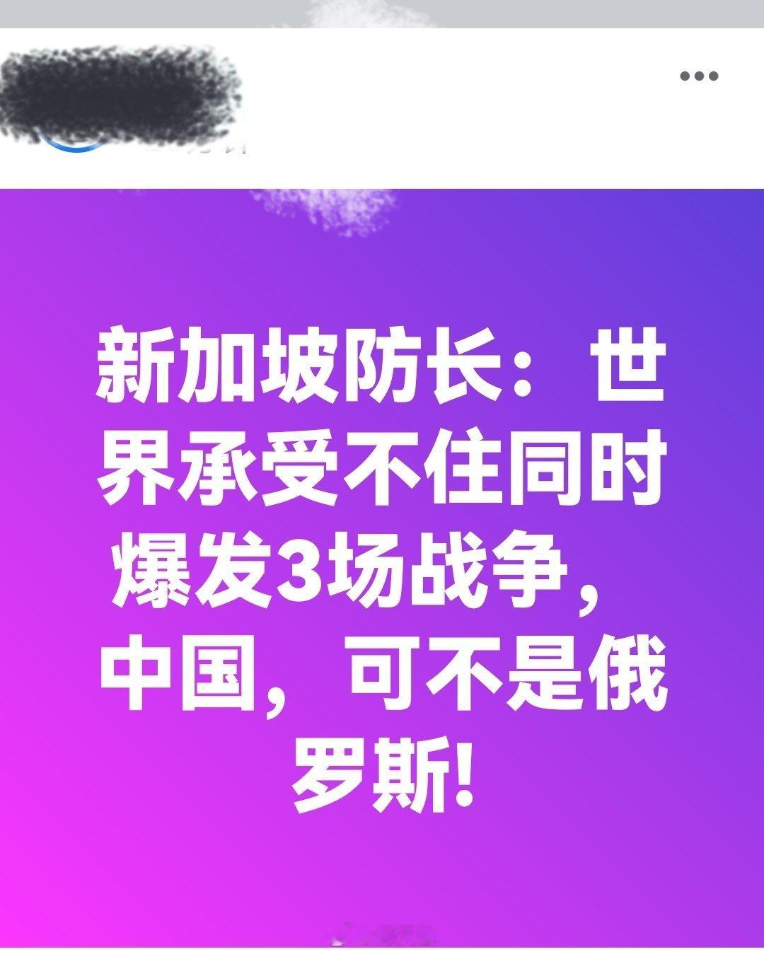 新加坡防长:世界承受不住同时爆发3场战争。海外新鲜事何天恩