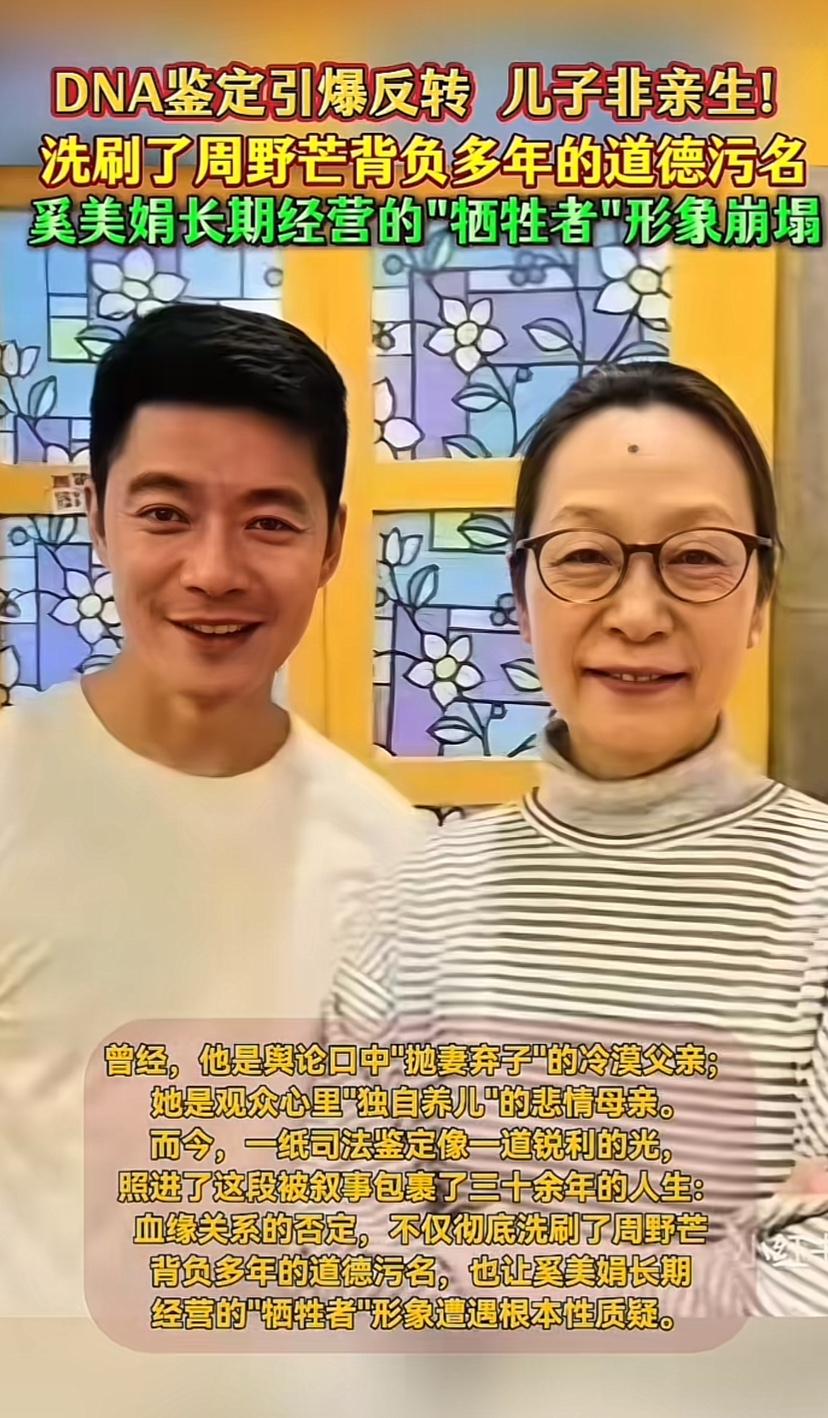 大家都在好奇奚美娟儿子的亲生父亲是谁?隐瞒了30多年都没有被曝光,周野芒宁愿背负着30年抛妻弃子的骂名也没有透露半点信息,宁愿把自己前途毁掉也不说出实情,这里面肯定有隐情。 从周野芒背着骂名沉默30年来看,奚美娟儿子的亲生父亲肯定不一般,能让周野芒隐忍下来,这个人的能量肯定比他大,30多年都没有认亲也说明这个人不一般,不方便透露因为影响不好,这人肯定不在商界。 年轻风光无限的奚美娟,人到老年还留下话柄,过往美好形象也荡然无存。人生如戏全靠演技,何况又是演技精湛的演员。