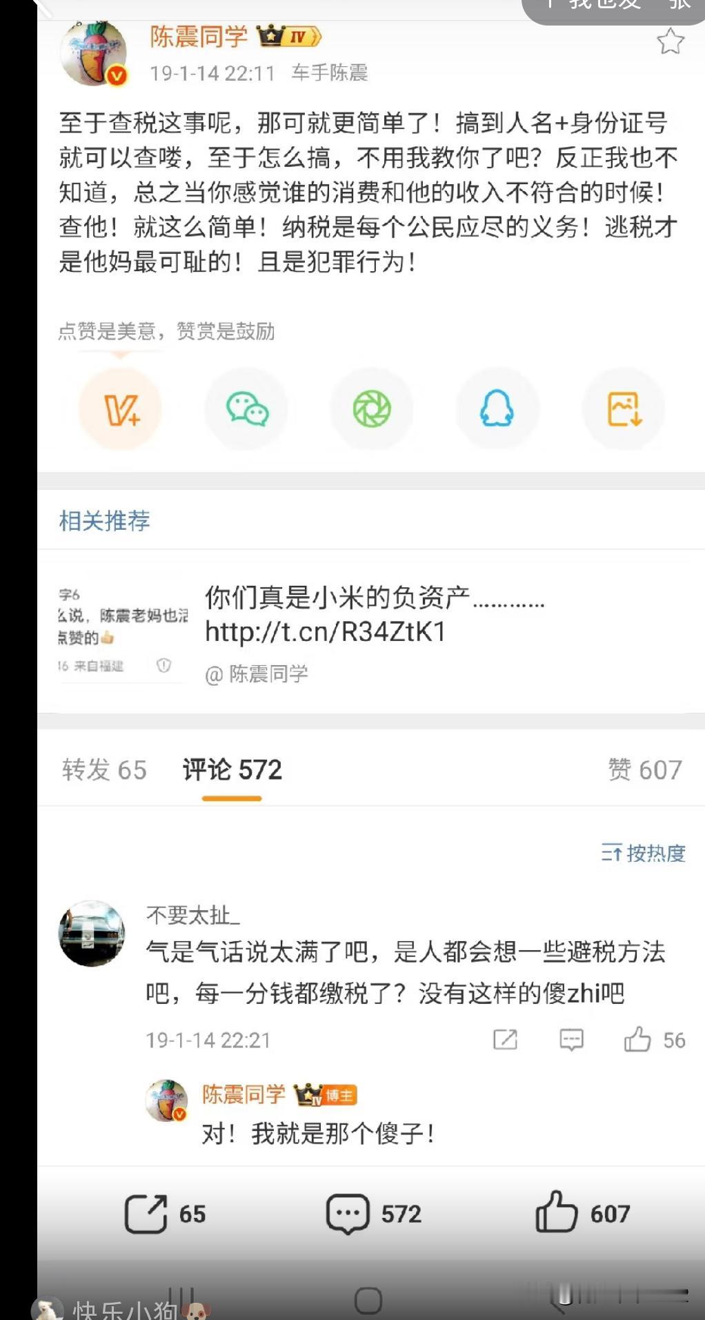 车评人陈震偷税详情公开。 刚刚,根据官方报道,经查,2021年至2023年,陈震通过隐匿收入、转换收入性质、进行虚假申报等方式,少缴个人所得税共计118.67万元。2025年11月,国家税务总局北京市税务局第三稽查局对其作出追缴税款、加收滞纳金并处罚款共计247.48万元的处理处罚决定。目前,涉案税款、滞纳金及罚款均已追缴入库。 此前,陈震的自媒体大小号均被禁言了。