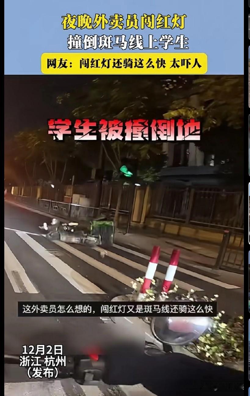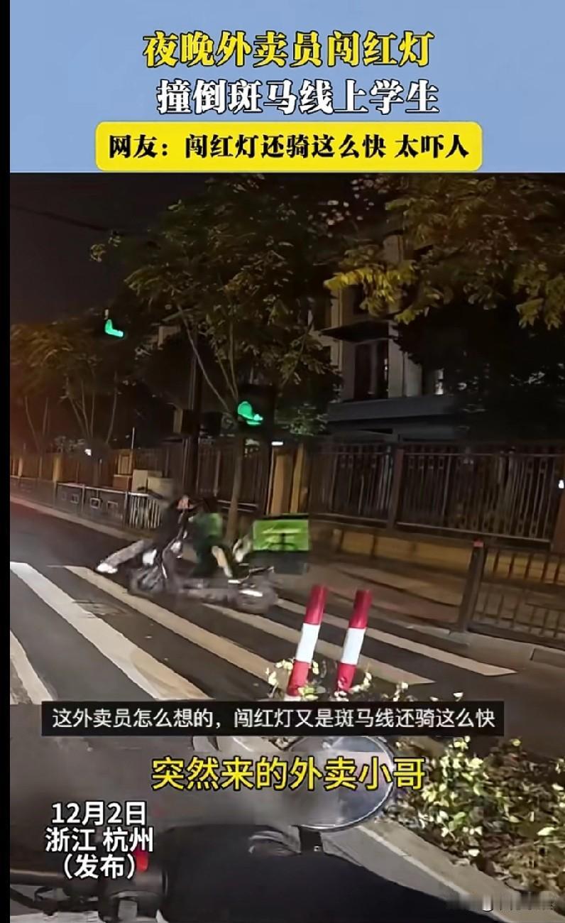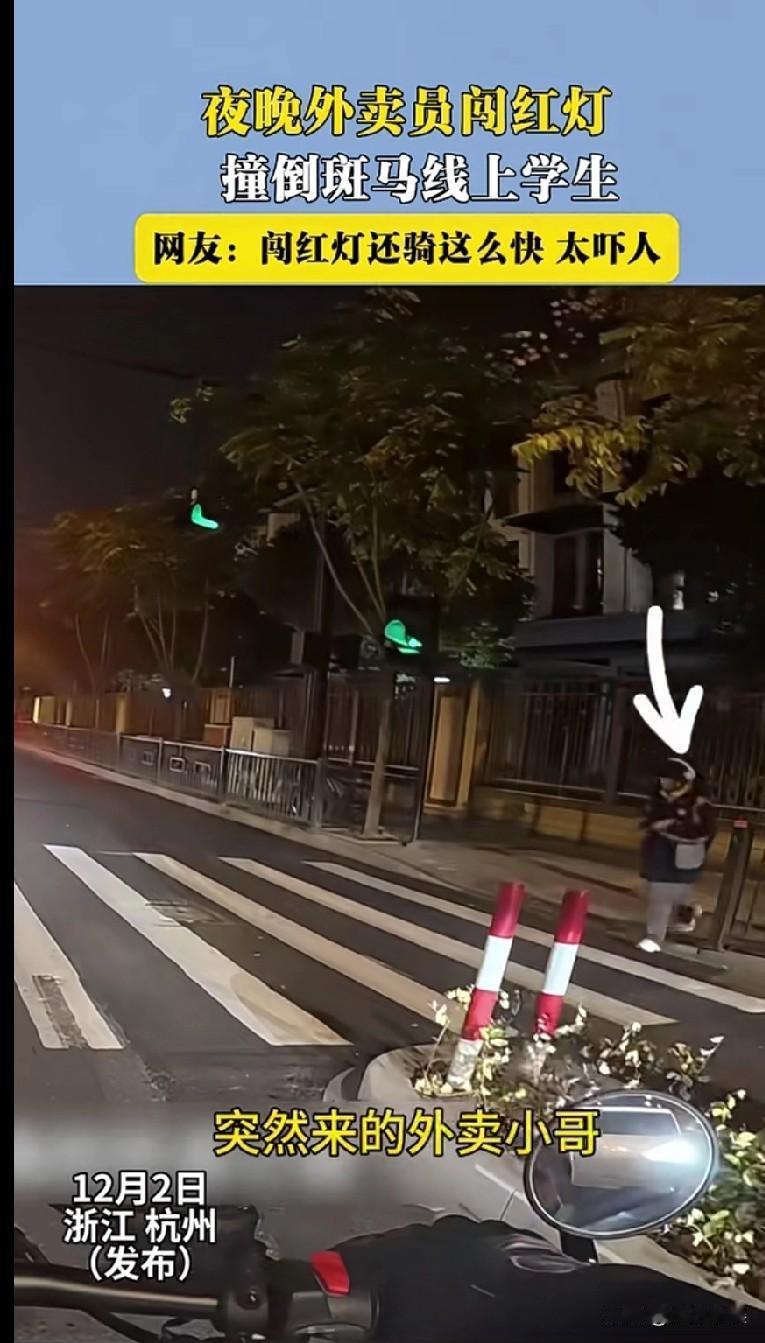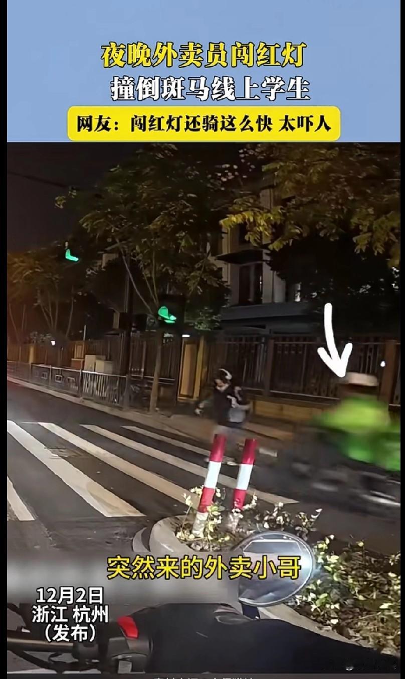 这外卖员太可恨了,不但闯红灯,而且速度还特别快! 一女学生在人行道绿灯时过马路,刚走没几步,忽然就窜出来一外卖小哥闯红灯,并且车速还飞快,把女生撞倒在地,看着撞的可是挺严重的! 有的外卖员骑车太快了,红灯也闯,即使是在学校门口也不减速,他们虽然是工作很辛苦,怕订单超时,但是不注意安全也不行啊,如果出事了,就不是订单超时罚点钱的事了,如果把人撞坏了,损失更大,而且也是对别人和对自己的不负责任! 还有这位女学生,虽然外卖员闯红灯不对,但是为了我们自身的安全,过马路时也应该仔细观察路况,不应该把自己的安全都赌在别人的身上,我们自己也应该注意安全啊!送外卖事故 外卖员女孩 外卖员停车事件 红灯闯了 外卖员交通安全 红灯闯行 外卖骑手