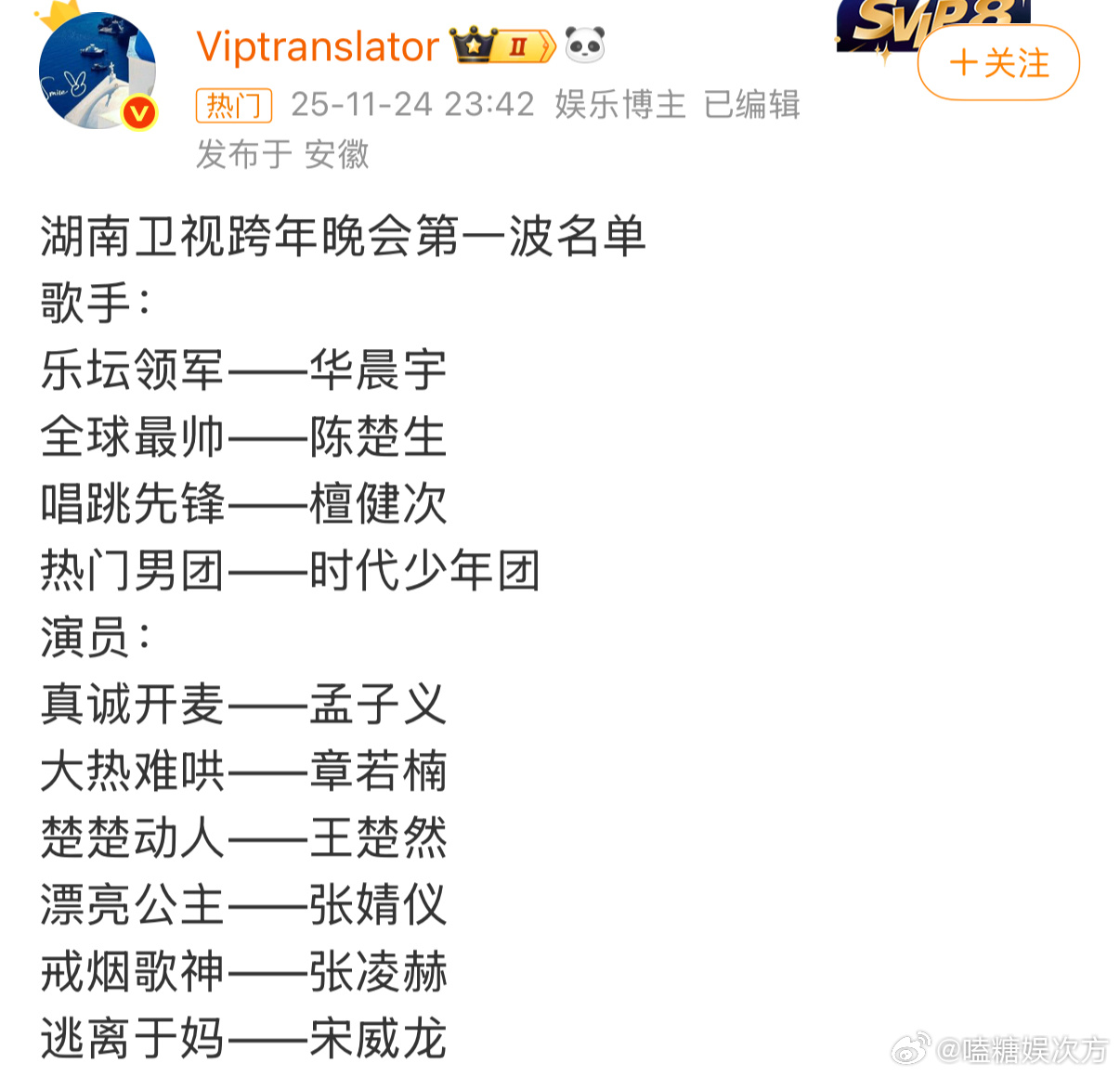 湖南卫视跨年演唱会官宣湖南卫视跨年演唱会 12.31海口锁定芒果!没海报却期待值爆棚,万人合唱+神仙阵容想想就激动~