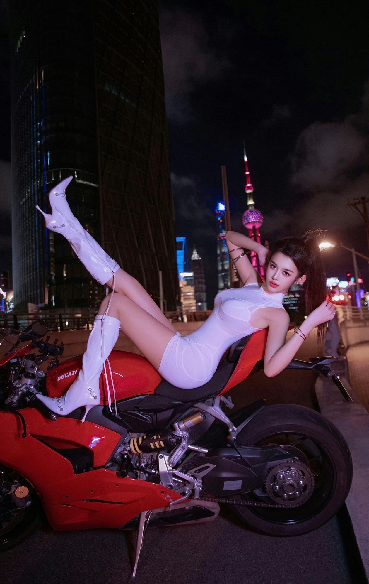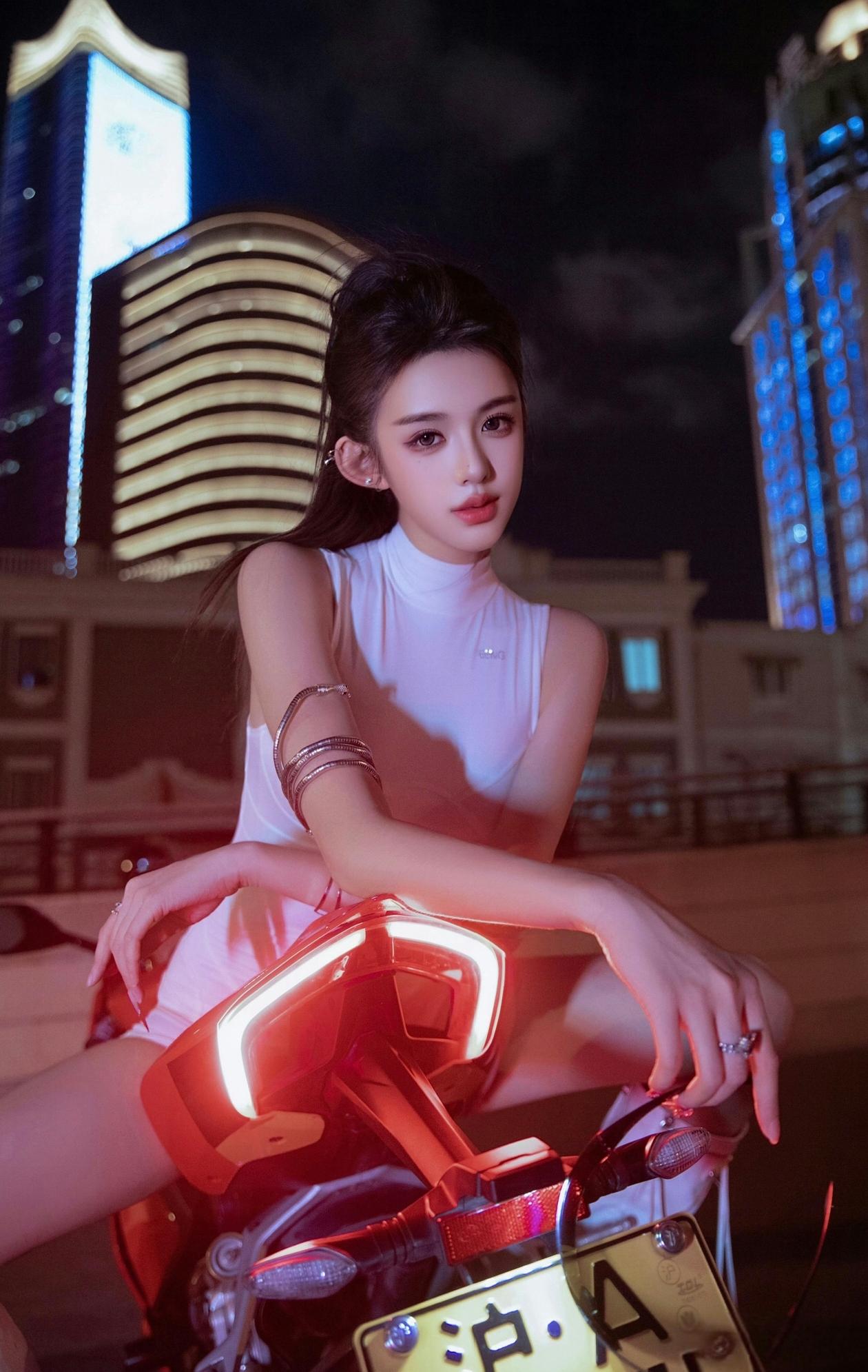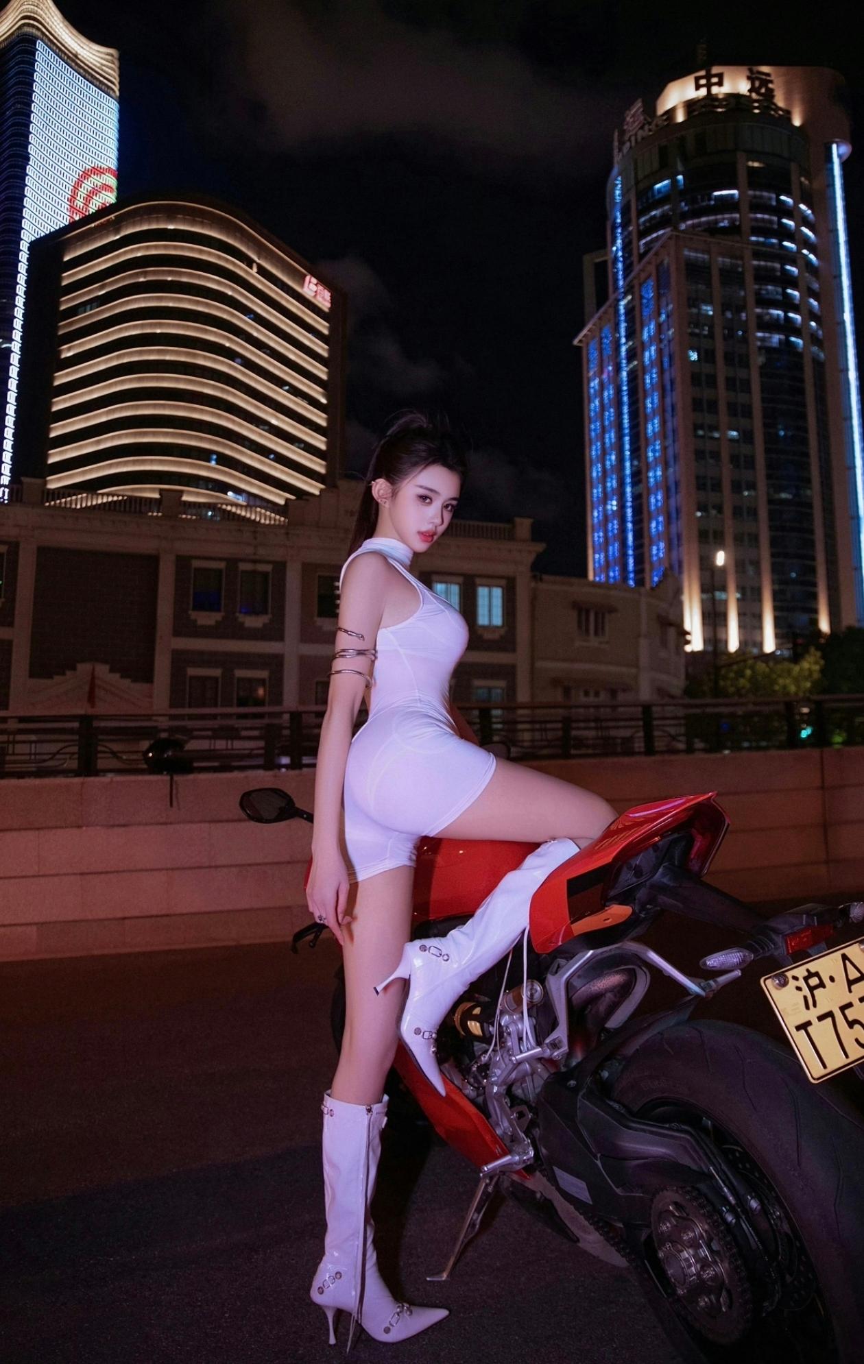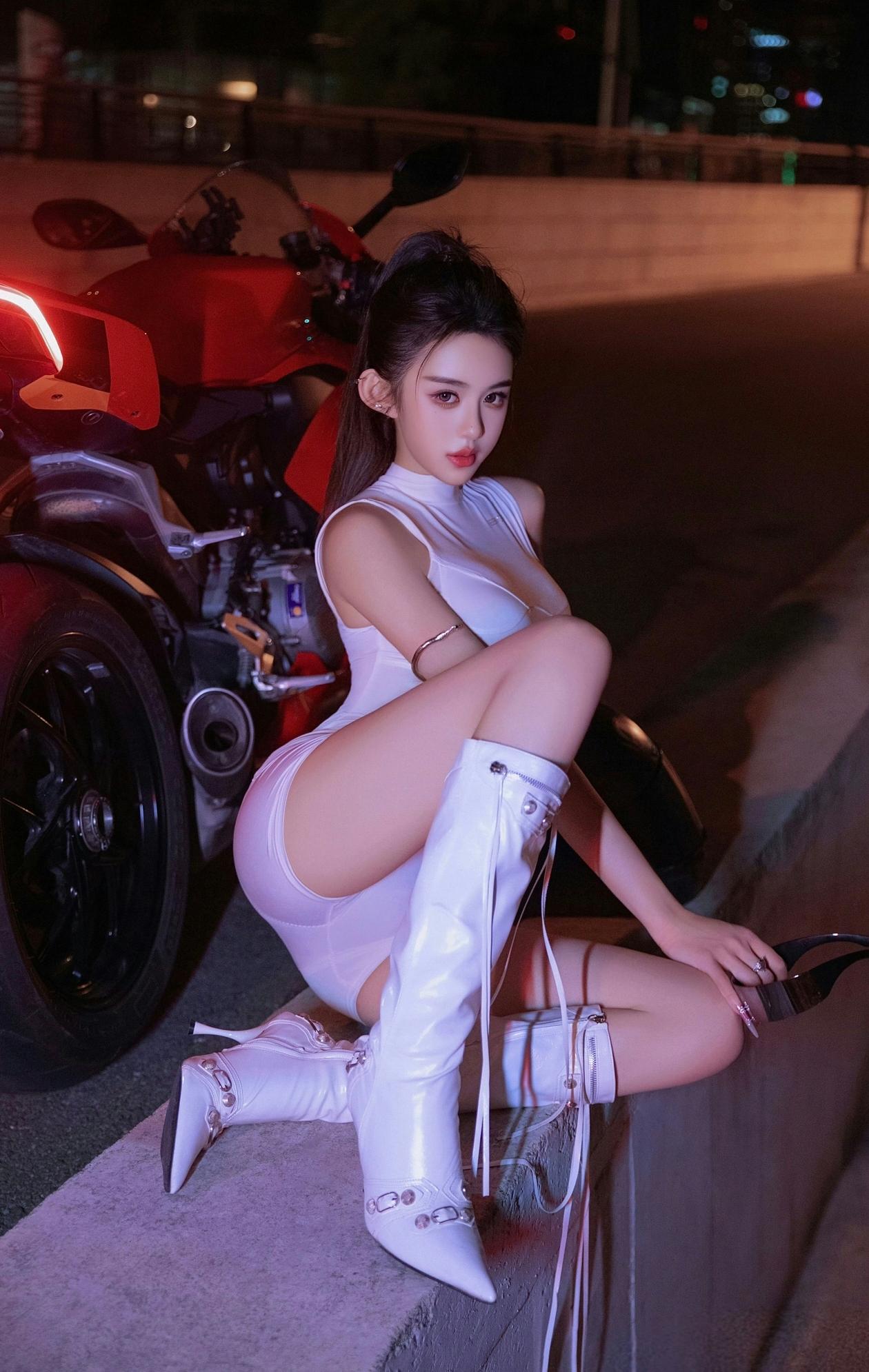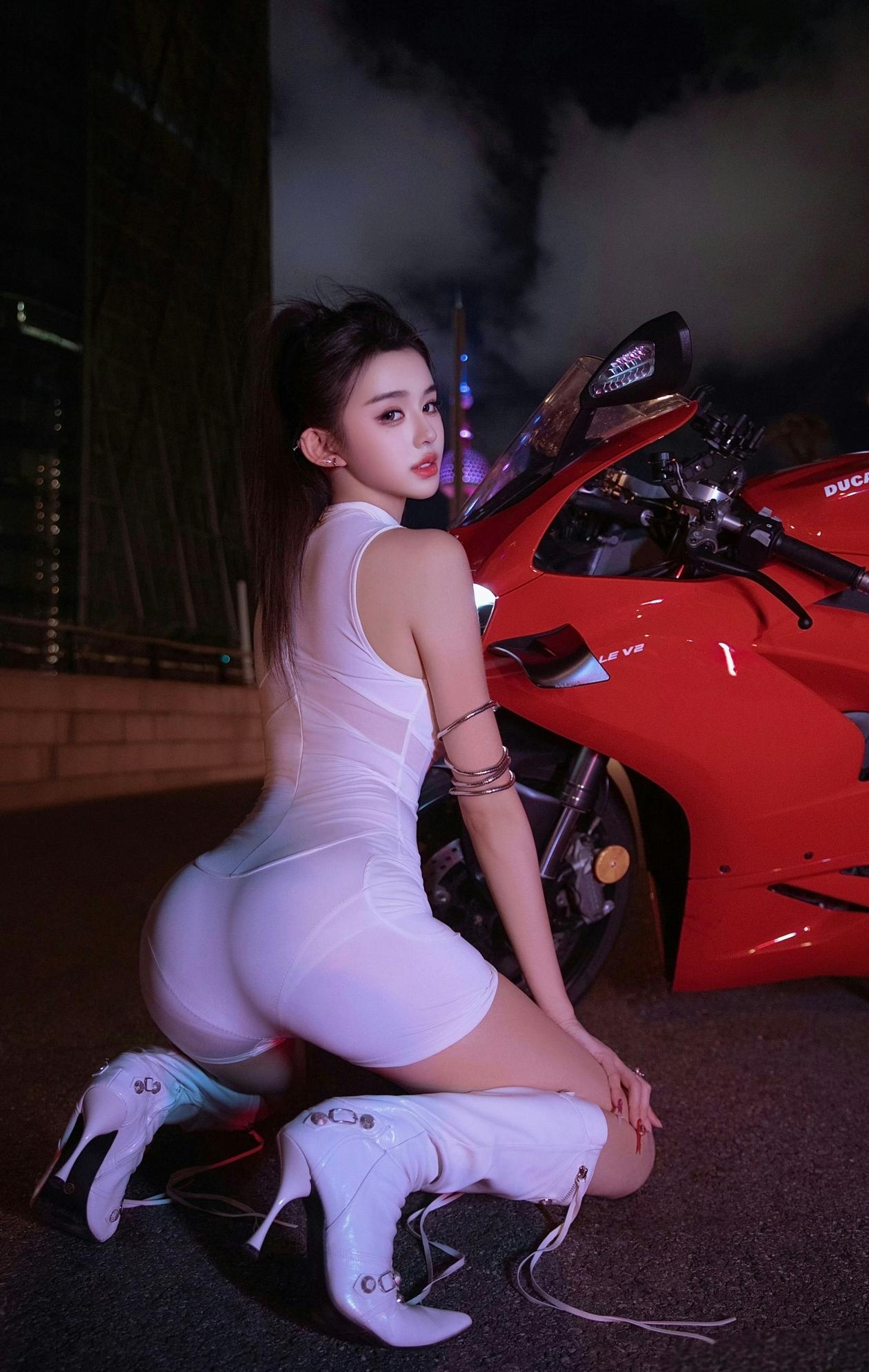 酷感少女与红色机车,尽显时尚与自由!🏍️✨ 酷感机车女郎 炫酷机车美女 摩托冷艳美女