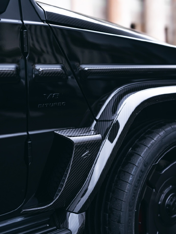 碳纤狂魔!G-Klasa Inferno套件太炸裂 50+碳纤维组件全覆盖:宽体轮眉、引擎盖、侧裙到全新后包围,连车顶都是碳纤材质。侵略性线条+极致精细做工,整车宛如移动的碳纤雕塑,气场直接拉满!这波硬核改装,谁看了不迷糊?