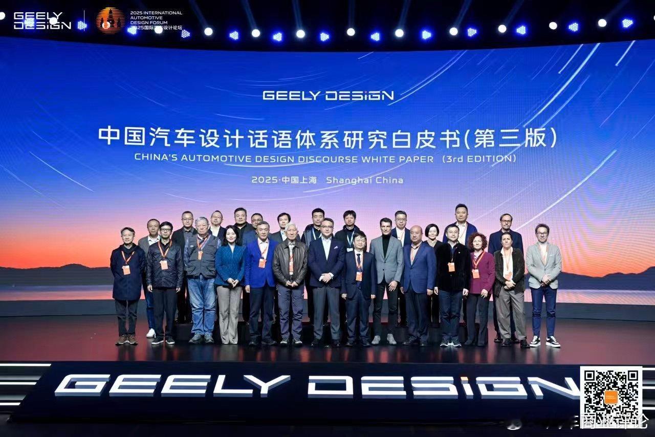 2025国际汽车设计论坛圆满举办,中国汽车设计话语体系研究再升维12月5日,吉利“2025国际汽车设计论坛”在上海举办,全球产、学、研、媒、企等影响力人物齐聚,共探“中国设计•全球审美”发展之道,一同见证《中国汽车设计话语体系研究白皮书(第三版)》的发布。论坛上,吉利还分享了《吉利设计九大原则》,以及“中国用户审美分野地图”、“中国色•吉利青”、“中国R角”、“吉利纹样”、“中国舒服前舱体验研究”、“银河美好体”等系列研究,为中国汽车原创设计从发散探索转向精准聚焦夯实了理论根基。原创设计已成为吉利的核心竞争力,其体系化的设计优势更筑牢了品牌向新、向上发展的坚实设计护城河。而“百万银河现象”的出现,更是直接印证了中国汽车原创设计从理论探索落地到市场验证的成功跨越,不仅推动中国汽车设计实现从“跟跑”到“领跑”的进阶,也为全球汽车产业创新升级贡献了中国智慧与中国方案。吉利设计