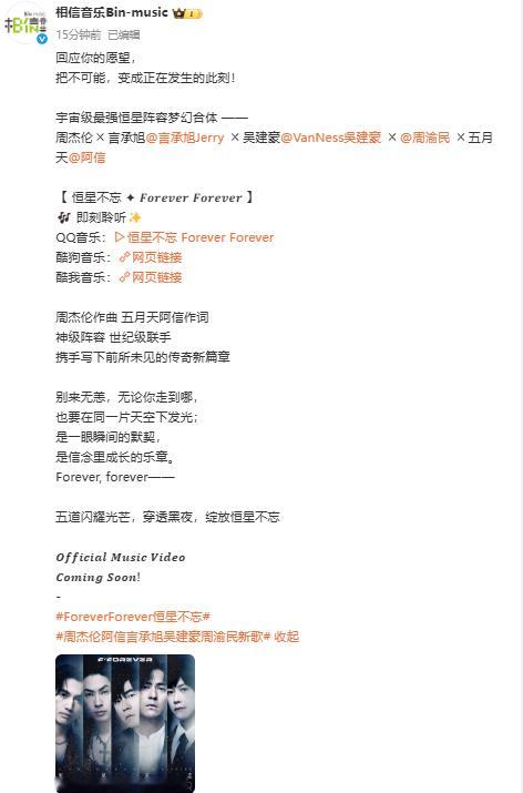 周杰伦阿信言承旭吴建豪周渝民新歌恒星不忘y1s1真的佩服阿信的顶级执行力,破天荒合作阵容都被他搞来了,周杰伦&言承旭&吴建豪&周渝民&五月天阿信 5个人合体发新歌。做梦都不敢梦的事情发生了,青春里的所有美好都再次集结,真的就像这新歌歌名一样「恒星不忘」,月底的F✦FOREVER上海演唱会期待值直接拉满!