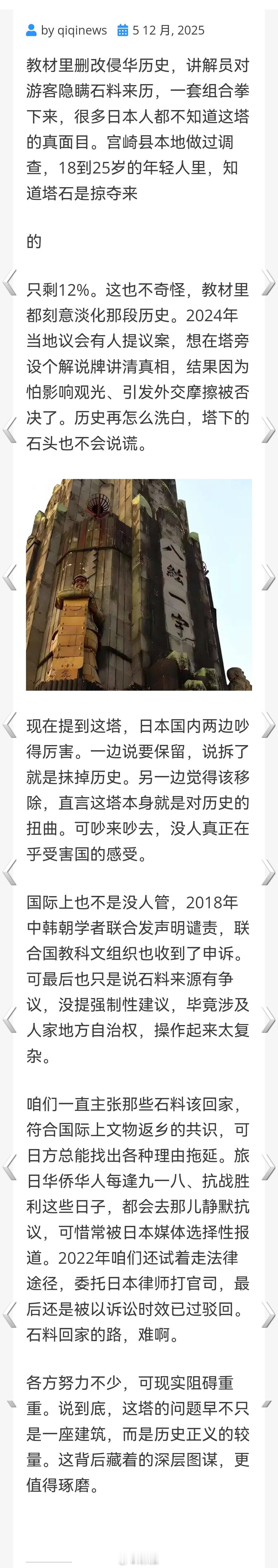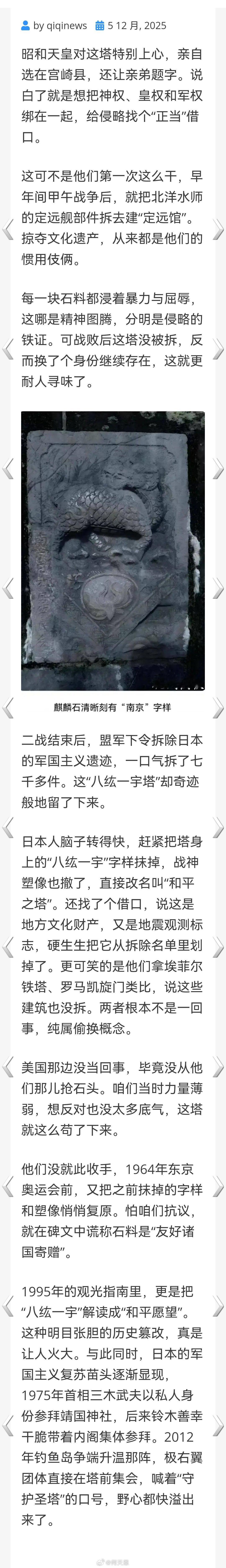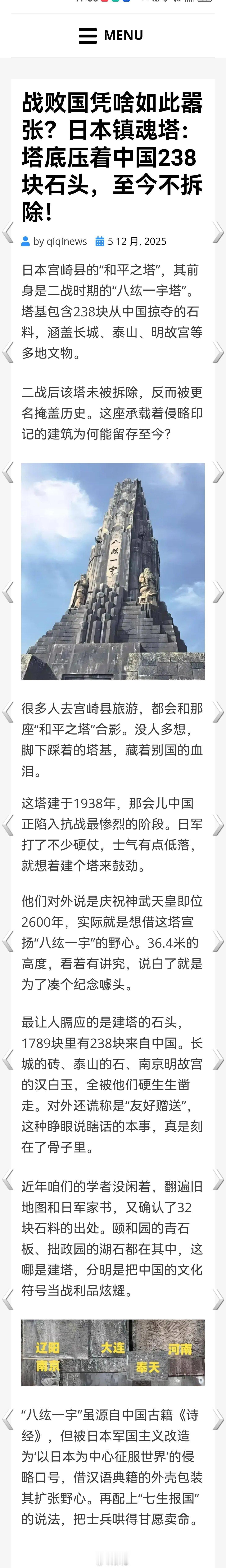 战败国凭啥如此嚣张?日本镇魂塔:塔底压着中国238块石头,至今不拆除!海外新鲜事