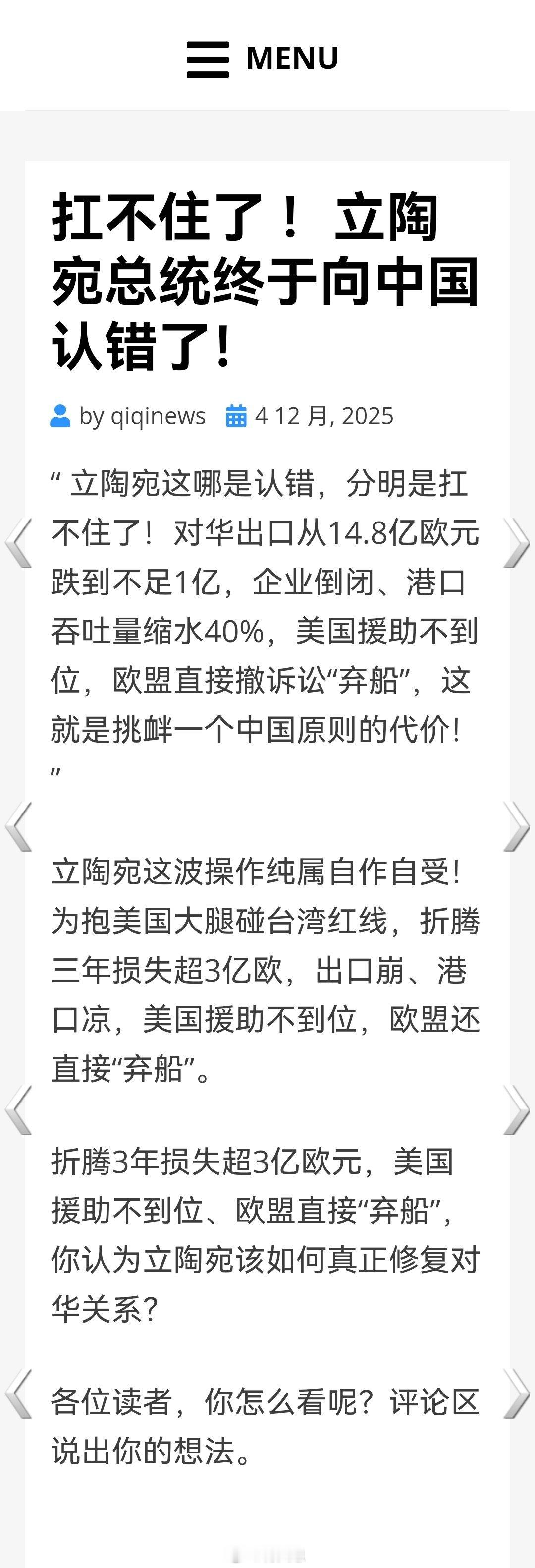 这立陶宛本来就是只破碗,让它自己去自作自受、自讨没趣吧。海外新鲜事何天恩