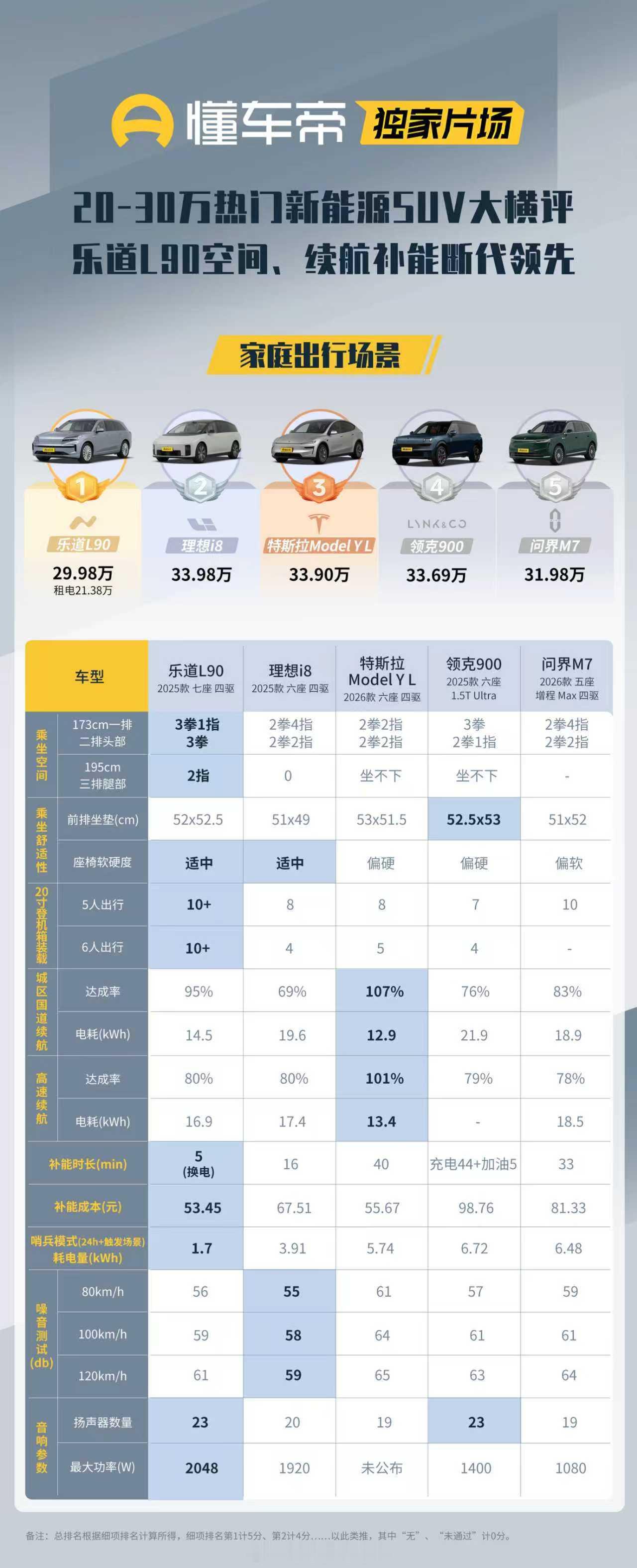 兄弟们,在懂车帝这波横评当中,乐道L90直接再次玩成了“个人秀”!上次6座SUV