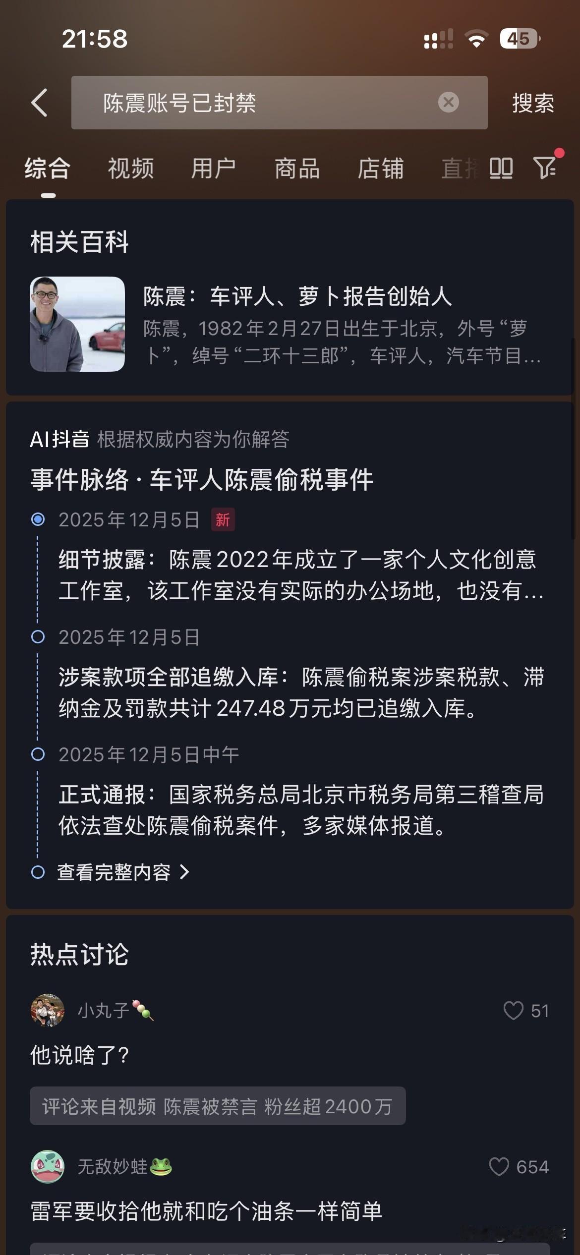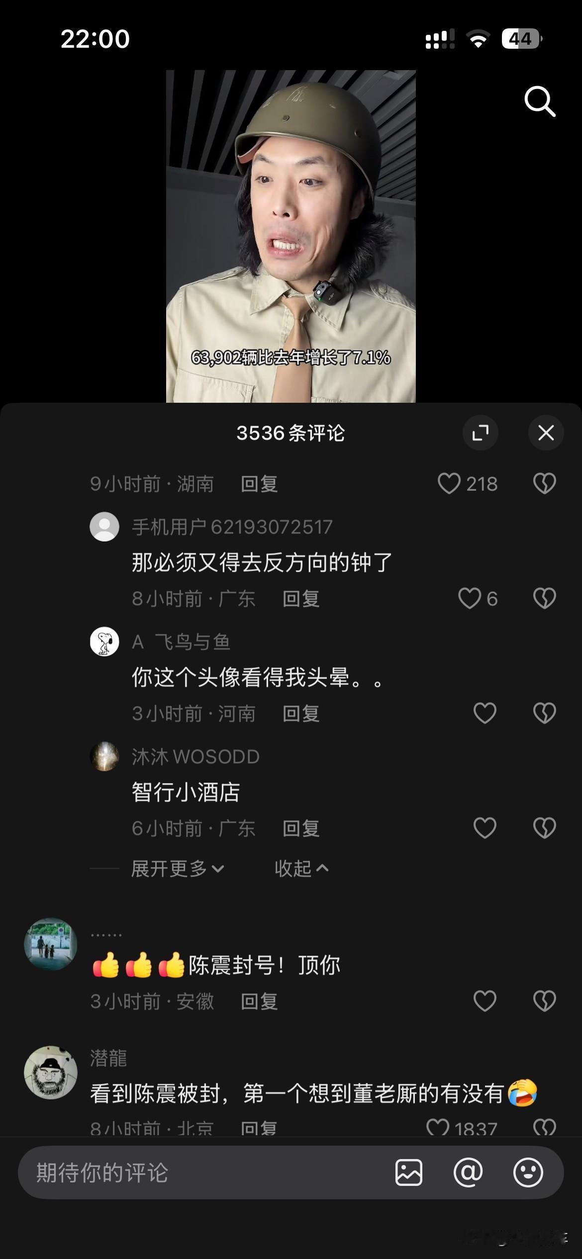 知名车评人陈震被全网封禁上了热搜,感觉瞬间各路十八线车评人都沸腾了。这操作,有点儿“棒打落水dog的节奏?尤其是一些看热闹不嫌事儿大的粉丝们,一股脑儿都跑到车评人董老师账号下留言。更有甚者让他开庆功宴啥的,这场面?说实话,真的应了那句名言:你受得了吗? 一鲸落万物生,希望以后大大小小的各路车评人们都能遵纪守法。不胡言乱语!认认真真做事,老老实实做人!陈震微博 陈震车评 陈震评测 陈震试驾 陈震事故 陈震试驾体验 陈震经典语录 陈震小米 陈震车评 陈震被全网禁言