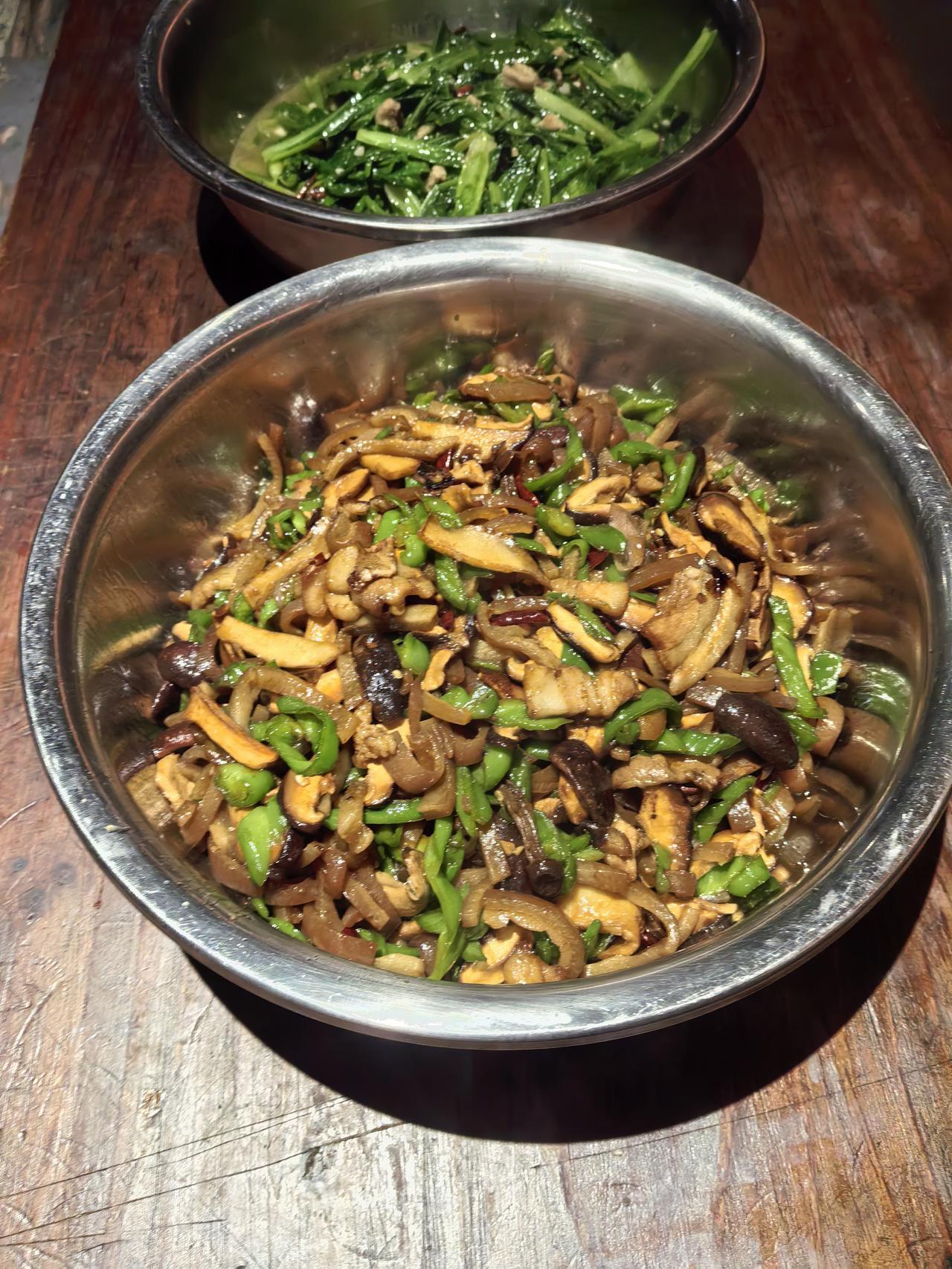 作为天天和烟火打交道的厨师,私藏的工作餐从不会敷衍——毕竟对美食的挑剔,得先从自己的餐桌满足!今天这顿晚餐,既有下饭菜的香浓,又有清爽解腻的搭配,每一口都是舌尖的小确幸~ 肉皮辣椒炒野山菌必须是今日C位!肉皮提前卤至软糯Q弹,吸饱了卤汁的咸香,和脆嫩的野山菌、鲜辣的青椒大火快炒,酱香裹着菌香直钻鼻腔。肉皮嚼起来弹牙不腻,野山菌脆嫩多汁,配着米饭能直接炫两碗,妥妥的“干饭神器”! 解腻担当非紫菜蛋汤莫属啦~ 蛋液搅打均匀,淋入滚烫的高汤中煮出细腻蛋花,撒上一把紫菜、葱花,滴几滴香油提香。汤色清亮,蛋花嫩滑,紫菜的鲜味儿完全释放,喝一口暖胃又解腻,瞬间平衡了炒菜的厚重感。 最后来一盘清炒油麦菜收尾,翠绿的油麦菜大火快炒,保留了脆嫩的口感,只放少许盐和蒜末调味,最大程度凸显了蔬菜的清甜。脆生生、香喷喷,解腻又爽口,让整餐饭的口感更清爽均衡。 厨师的工作餐,没有复杂的摆盘,却藏着最实在的烟火气——鲜美的下饭菜、暖胃的汤、清爽的时蔬,简单三样,却能驱散一天的疲惫。你们今天的晚餐吃了什么?有没有让你一口惊艳的家常菜?欢迎在评论区分享呀~