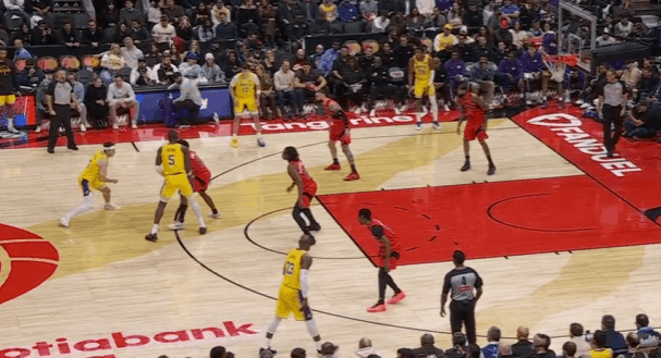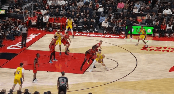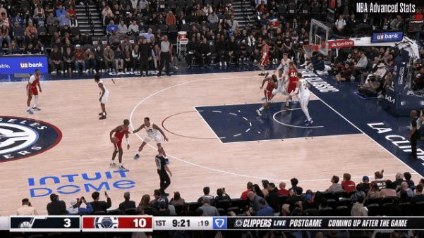 逐帧拆解:“神奇小子”里夫斯对阵猛龙狂砍44分10助攻图1文森特交球给低位发牌的詹姆斯后前往篮下为里夫斯设置无球掩护,里夫斯双手推开贾科比后底线启动,借助中路连续两道下掩护空手移动上提,获得出手空间后接詹姆斯上球三分抬手就进。在战术环节上湖人这个回合的战术与图2“Chicago Cut”有很多相似之处,或者说就是在“Chicago Cut”基础上做的升级:区别在于湖人又增加了一道无球下掩护(上图艾顿),增加了无球移动的跑动距离使接球者的终结区域从近框变为三分线外,这自然也使得战术更加难以防范。图3非常精彩的后场“四分卫长传“精准反吊给快攻最前线的艾顿。图4和八村的边路挡拆配合,佯装走掩护墙一侧实则“拒绝掩护”变向走右路突破摆脱追防的贾科比,见马穆前来协防主动支肘对抗撞开贾科比佯装起身投篮,进一步吸引马穆防守注意力后立即为空切的艾顿送上空接。图5挡拆行进间小停顿后迅速衔接二次加速打出节奏变化,沉肩对抗撞飞CMB——这是个111kg的大前锋——随后篮下脚步“戏耍”后上篮打进。图6詹姆斯“Flare Screen”起手接球,随即衔接“詹里挡拆”配合,里夫斯设置“Touch Screen”抓贾科比弱延误抢出身位优势,詹姆斯非常隐蔽的击地传球——以至于球到里夫斯手中时贾科比都没反应过来——找到顺下的里夫斯。第三节手感全开之后各种图7、8不讲理超远三分和图9神仙球就都来了。图10英格拉姆中投命中后里夫斯持球闲庭信步推过半场,等队友落位前便抓猛龙阵地防守立足未稳立即启动左路突破摆脱领防的谢德后直杀篮下,迎着前来协防的奎克力和马穆起跳后空中对抗打进绝平上篮。图11最后八村的底角三分压哨绝杀也是里夫斯持球操刀,吸引巴恩斯“延迟夹击”后回给弱侧接应的詹姆斯,三人合力完成绝杀。洛杉矶湖人湖人战胜猛龙八村垒绝杀猛龙