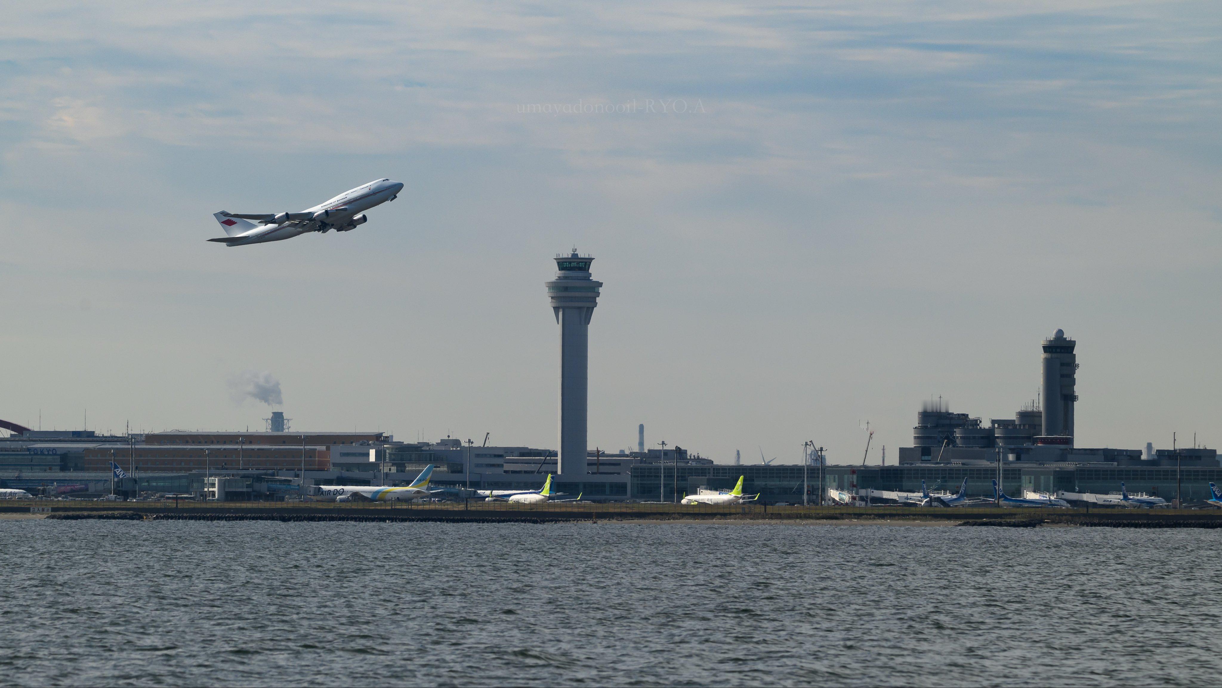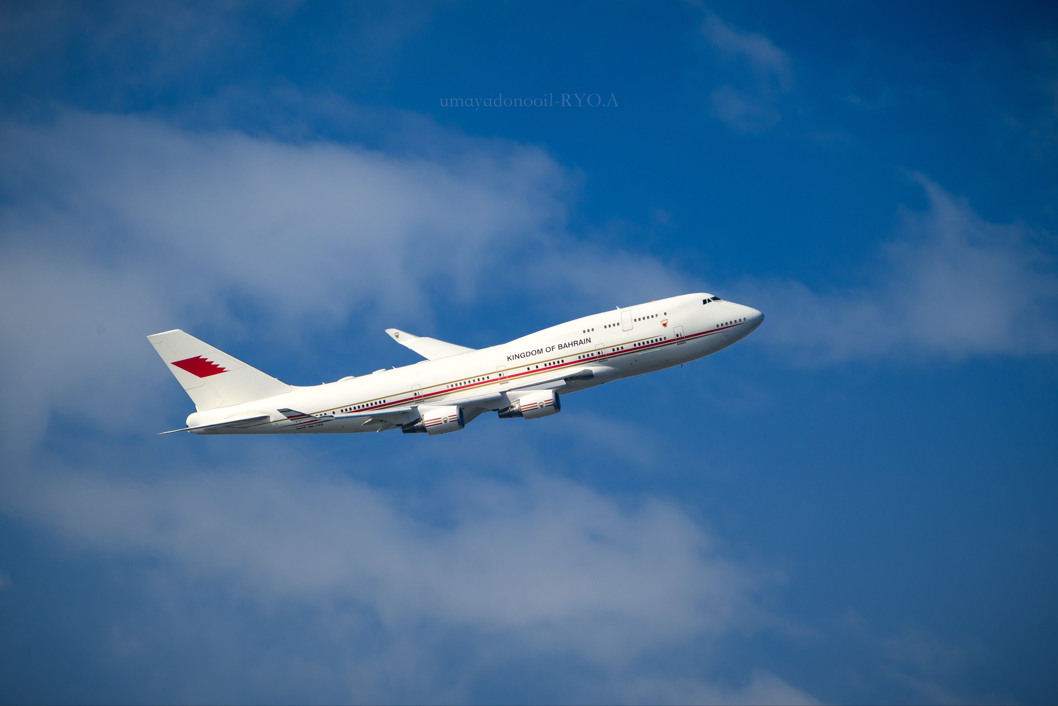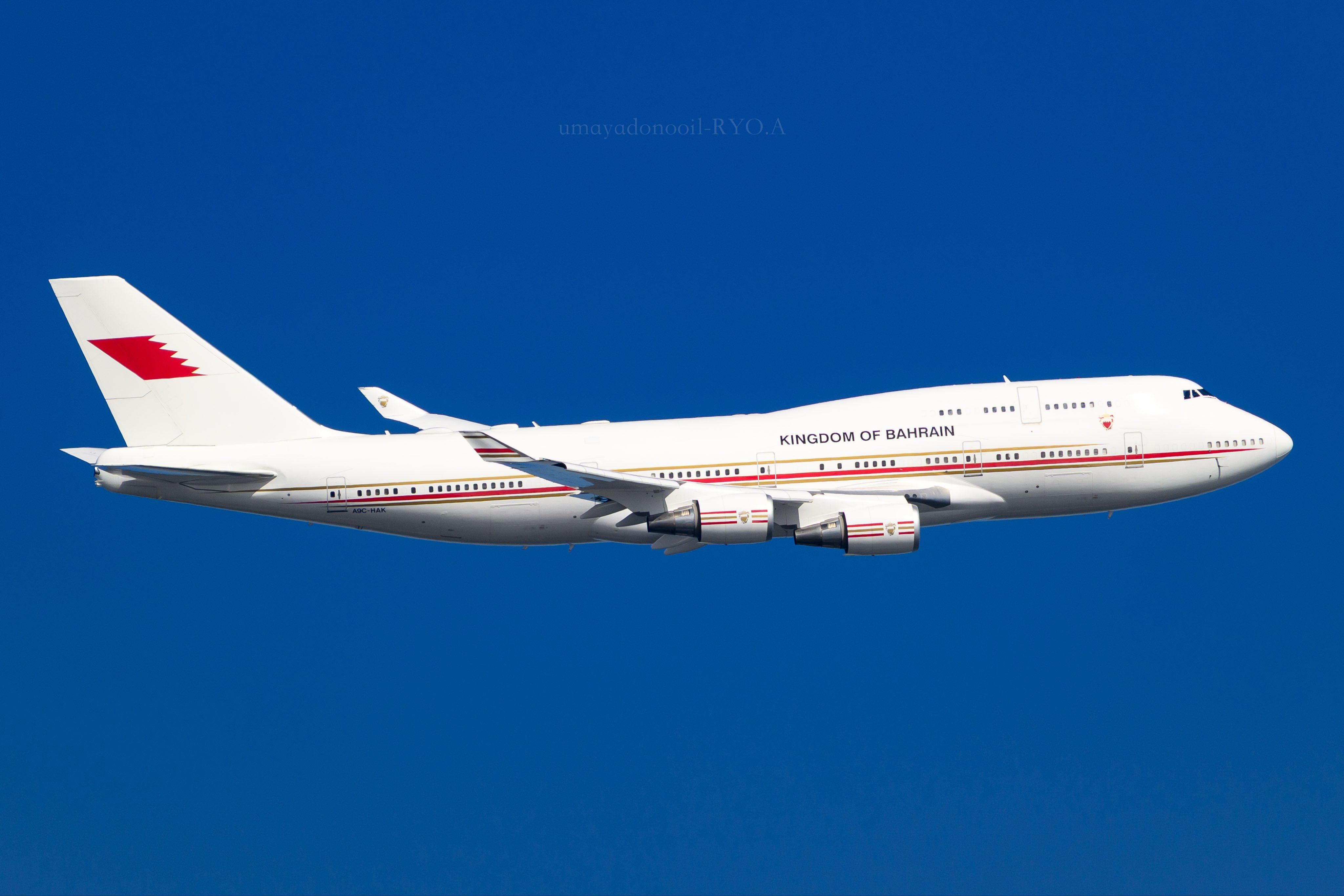 飞临羽田机场上空的巴林皇家航空波音747-400