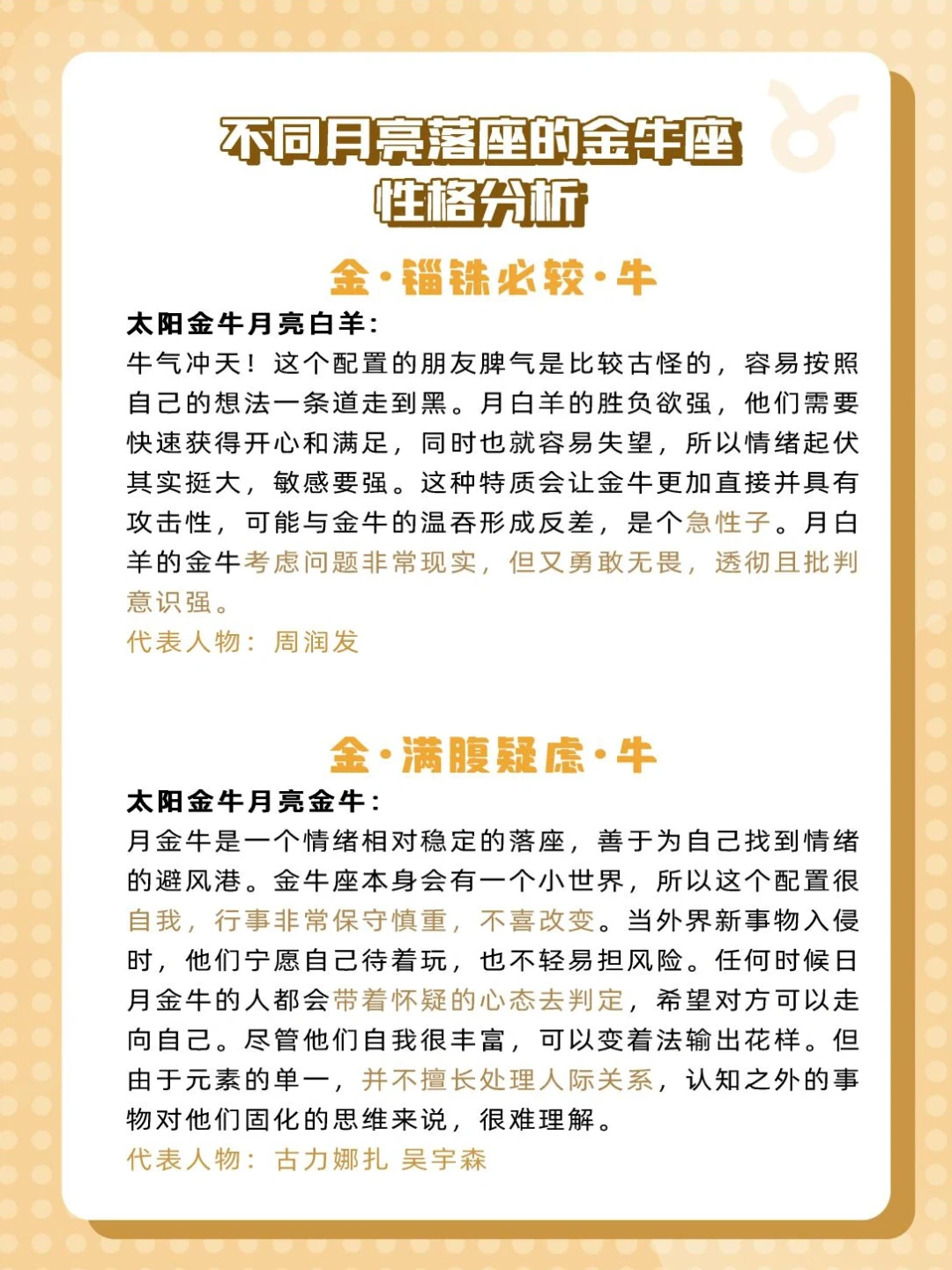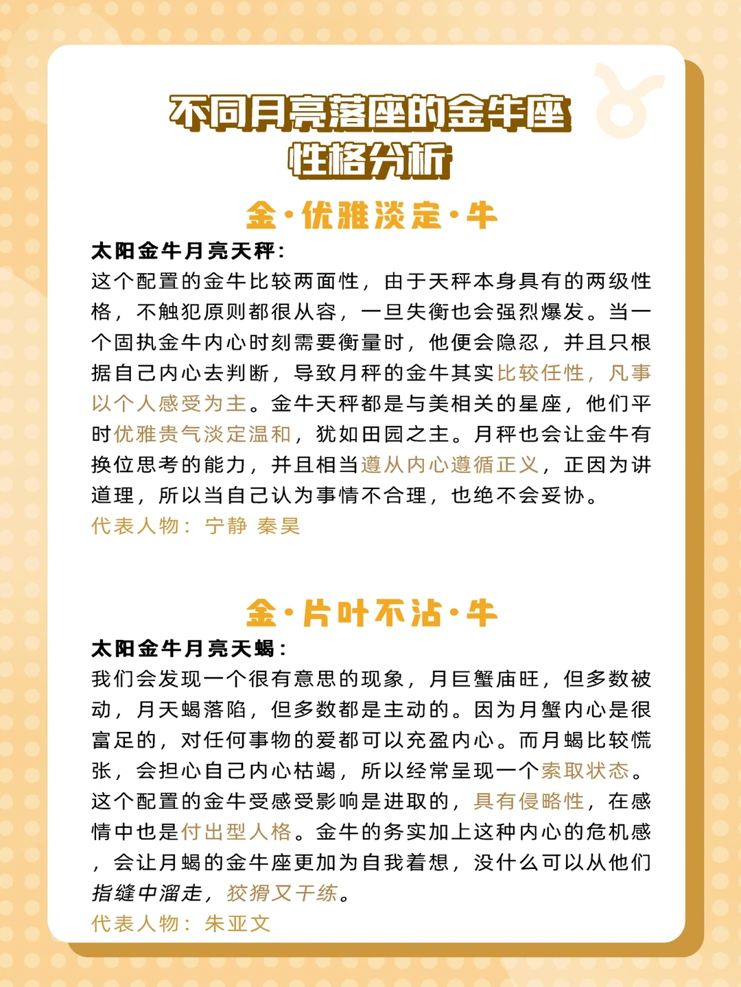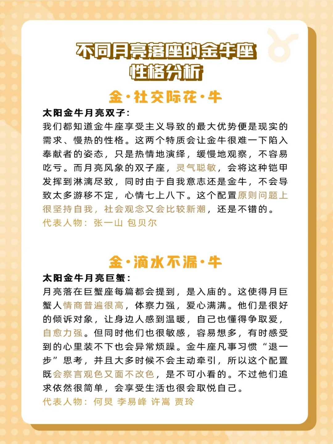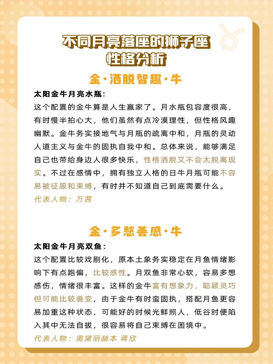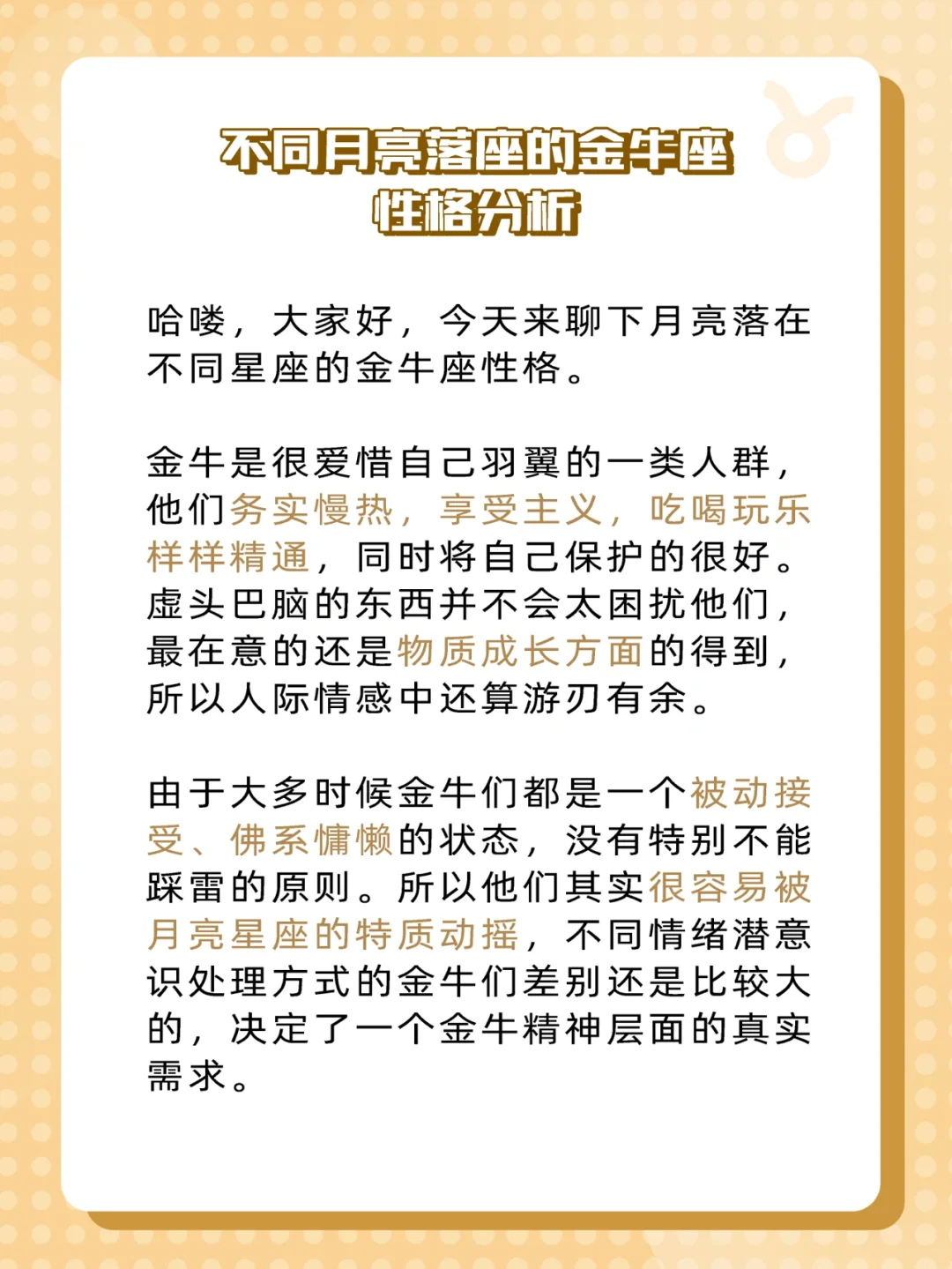 来给家人们更新不同月亮的金牛座啦✨