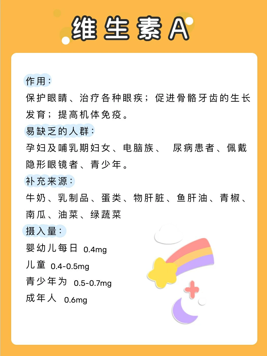 缺乏维生素A会出现夜盲症,是和视力最相关的维生素,虽然不能治疗近视,但对视力的保持有帮助