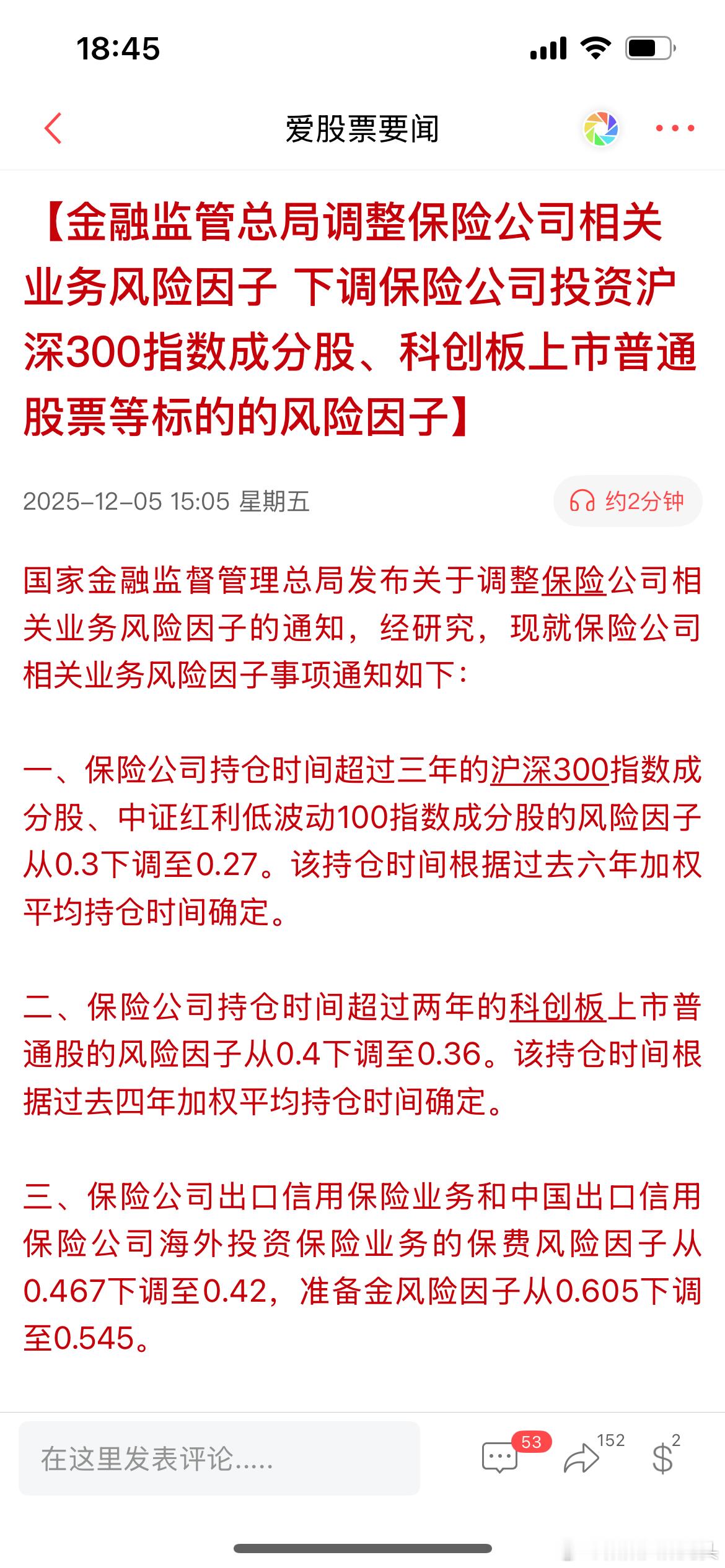 今天下午保险股大涨,带动券商也大涨,最终把A股全带起来了!很多人在找保险股涨的原因,终于找到了,大摩将中国平安加入重点关注名单。但盘后才知道,原来是金融监管总局放大招了。金融监管总局下调保险公司风险因子,相当于给险资松绑加杠杆了,释放了更多资金,有利于险资加大投资!监管层这是明确这是鼓励险资加大入市力度了。 但阳阳想问,大A这些聪明资金,他们是怎么提前知道消息的呢?不应该去查一查么。A股行情