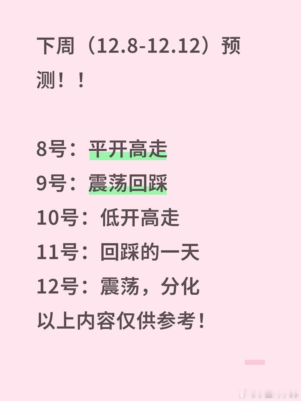 我也预测一个下周行情,仅供参考,全当节目效果