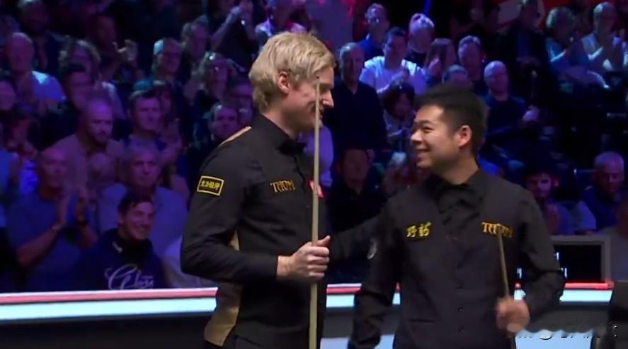 输掉了比赛,但庞俊旭的演绎仍然惊艳全场! 世界排名第三的尼尔•罗伯逊与世界排名第三十位的庞俊旭,无论比赛经验还是相距甚远的一场较量。比赛开局庞俊旭1:0领先、到1:5遭遇5连鞭、悬崖边上仍顽强奋力追赶,虽然最终以4:6不敌罗伯逊,但无畏无惧的拼劲和大心脏的惊艳演绎,已收获了对手尊重和现场观众的热烈掌声,毫无遗憾的告别本届英锦赛的奇幻之旅,也不枉庞妈妈千里奔袭的现身支持。加油!庞俊旭。