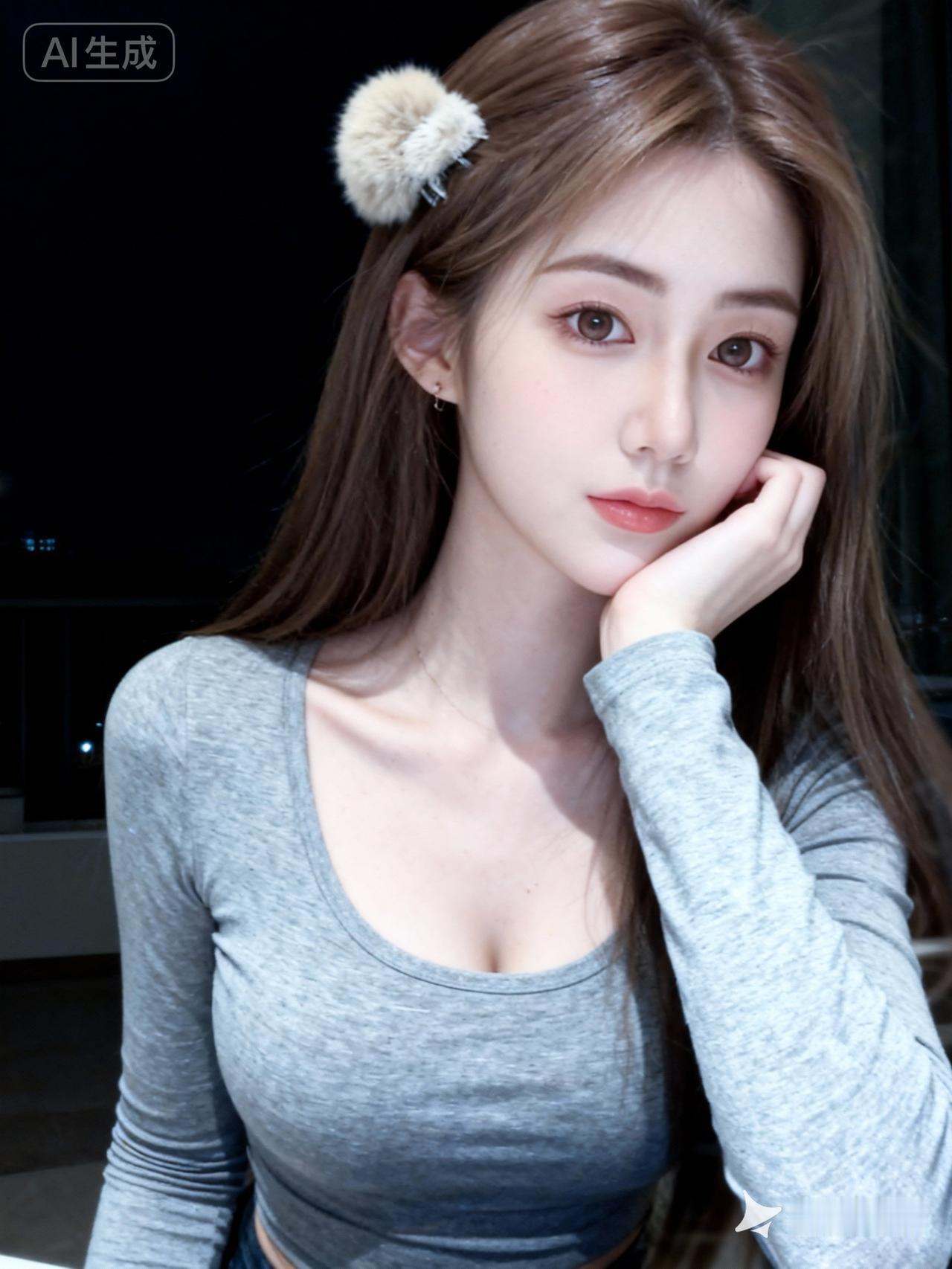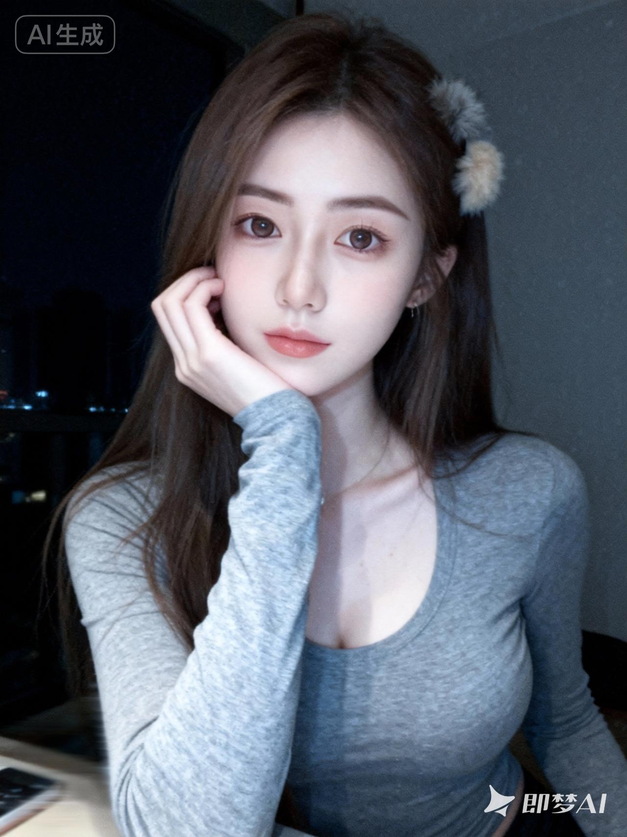 一个年轻的漂亮小姐姐写真照,胸部饱满丰腴,拥有突出的s型曲线。她中长发,有细发带