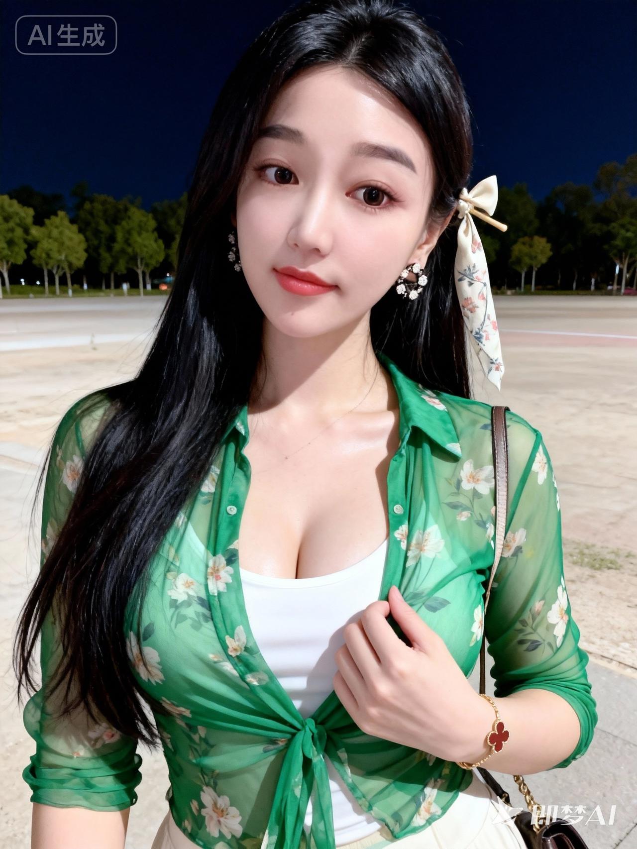 一个年轻的漂亮小姐姐写真照,胸部饱满丰腴,拥有突出的s型曲线。她中长发,有细发带