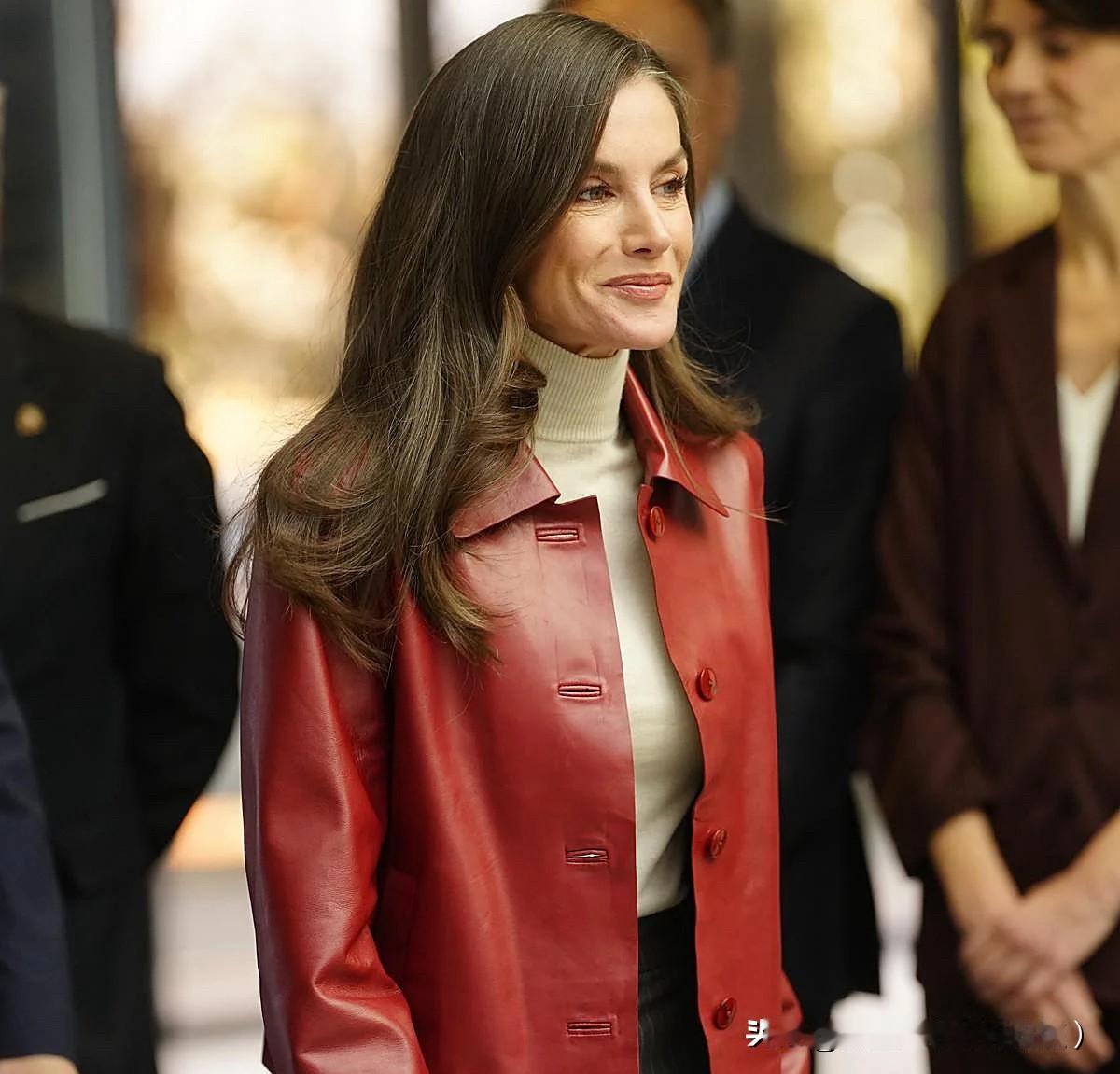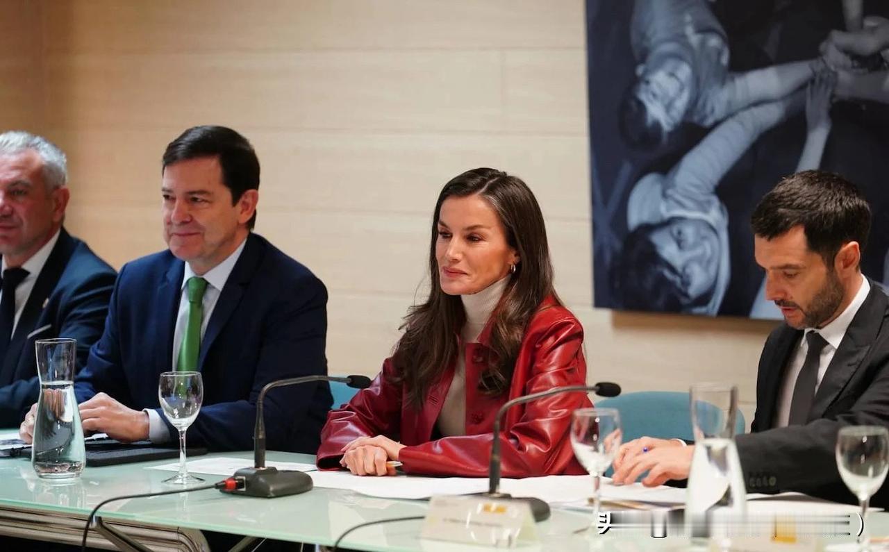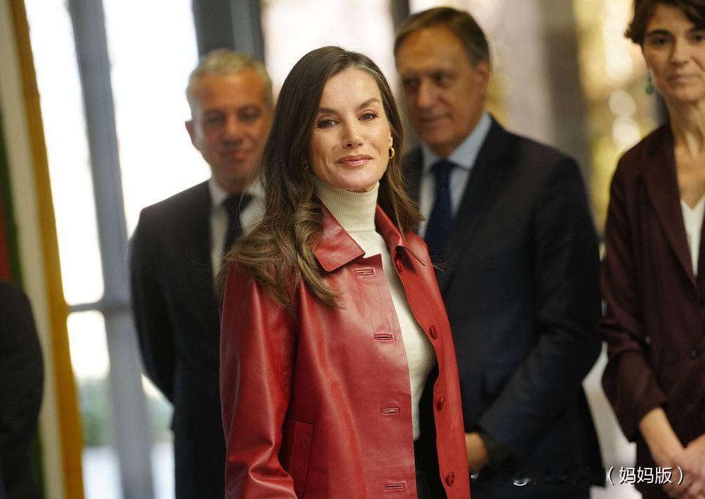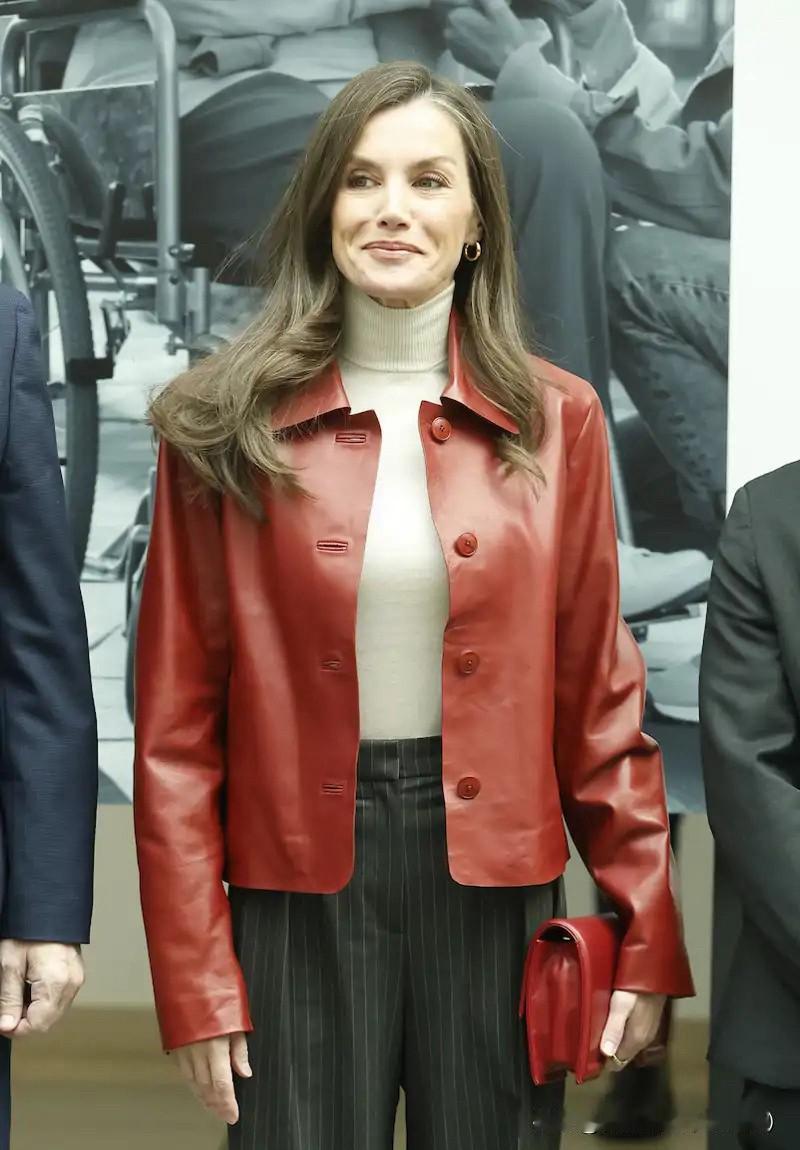 莱蒂齐亚王后以名誉主席身份,出席皇家残疾人理事会会议!本土品牌Mango的红色皮