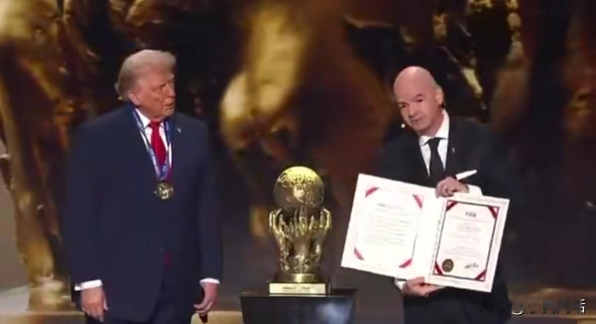 特朗普终于拿到了“和平奖”[呲牙] 在2026年世界杯抽签仪式上,美国总统特朗普被授予新设立的“国际足联和平奖”。 获得“国际足联和平奖”的条件是:国际足联和平奖每年代表全球数十亿热爱足球的人们,颁发给一位杰出人士,以表彰其通过卓越的领导能力和行动,在推动世界和平与团结方面所展现出的坚定承诺。 恭喜特朗普总统“实至名归”!如愿以偿![捂脸] (图片来自网络)