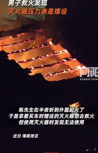 “还有什么不敢造假?”海南,男子半夜听到外面起火了,连忙拿自己车里的灭火器去灭火,结果发现灭火器的压力表是个摆设,根本喷不出来!男子:“灭火器都敢做假,真的太缺德了!”网友:有些中国人真是丧尽天良,这种关乎生命的东西能造假! 陈先生晚上两点多失眠,坐在自家阳台上。忽然,一阵刺耳的“噼里啪啦”声划破夜空,他下意识放下茶杯,透过半开的窗户向外望去。 街对面一栋老旧民居的屋顶正腾起浓烟,火光映红了夜空。他的心猛地一紧,脑海里闪过最坏的可能:如果火势蔓延,隔壁的住户甚至整条街的居民都会有危险。 “糟了,得赶紧灭火!”陈先生心里焦急万分。他一边喊着邻居的名字,一边冲向车库。他的车里,平时都放着一个小型灭火器——平常用得少,但他一直把它当作家中安全的最后一道防线。 陈先生抓起灭火器,飞奔到火源附近。他感受到夜风中带来的火焰热浪,呼吸都变得急促起来。 他按照平时训练的动作,一手握住喷嘴,一手按下压把,然而,灭火器的喷头什么也没喷出来,只是“咔嚓”一声空响。、 他愣住了,心里的惊恐瞬间化为愤怒和不解。“这……怎么可能?”他心里骂道。陈先生连忙检查压力表,只见指针纹丝不动,像是早已被锁死,完全没有作用。 愤怒之下,他把灭火器扔到地上,双拳紧握,胸口起伏得厉害。 他的脑海里充斥着一连串的问题:这种关乎生命安全的东西,居然有人敢造假?是生产商偷工减料,还是销售商刻意蒙骗消费者? 他愤愤地觉得,这不仅是对消费者的不负责任,更是对他人生命安全的公然威胁。 火势越来越大,幸好街坊邻居已经报警,并用水管尝试控制火焰。 陈先生只能无奈地站在一旁,看着火光映在夜空,心中充满了深深的无力感。他掏出手机,把自己遇到的情况记录了下来,发到了社交媒体上: “真恶心!半夜听到外面起火,我赶紧拿自己车里的灭火器去灭火,结果发现灭火器的压力表是个摆设,根本喷不出来!灭火器都敢做假,真的太缺德了!” 帖子一发出,立刻引发热烈讨论。网友们纷纷留言,有人表示震惊:“这也太夸张了吧!这种东西居然造假!” 有人愤怒道:“有些中国人真是丧尽天良,这种关乎生命的东西都敢造假!” 还有人分享了类似经历:“我家去年买的灭火器,拿到手就感觉不对劲,压力表永远在绿区,但一用就发现没水压。” 也有一些冷静的声音提醒大家:“大家买灭火器一定要选择有正规资质的品牌,定期检查,千万别存侥幸心理。” 还有网友提供了详细的使用和检查方法,包括检查压力表是否在红区、喷嘴是否堵塞、保质期和压力恢复情况等。 陈先生看到网友们的留言,心里既有些安慰,也更加气愤。他意识到,这不仅是他个人的问题,而是整个社会安全监管的漏洞体现。 网友们的讨论很快被一些媒体和公众号转载,标题都极具煽动性:“灭火器造假惊魂夜!”、“生命安全的隐形威胁!”、“车载灭火器竟成摆设!” 随着舆论发酵,更多的人开始关注这一事件。有网友上传了自己家中灭火器的检查视频,对比着陈先生的情况,大家开始讨论到底有多少劣质产品在市场上流通,如何避免类似危险。 甚至有人发起了小型的线上调查:“你家灭火器真的能用吗?”短短几个小时,评论数已经破万,转发量也迅速攀升。 “真希望有人能重视起来,不只是我遇到这种事情。”陈先生在帖子下补充了一条评论。