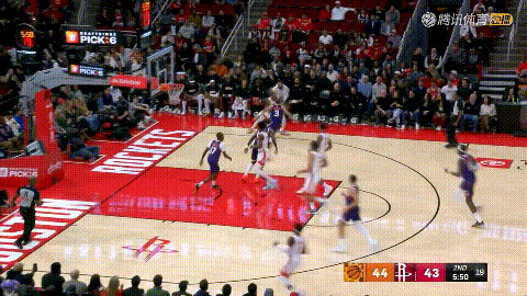 火箭超级球星杜兰特真是太霸气了!在今天火箭主场迎战太阳的比赛中,当时比赛进行到了第二节的五分多钟,杜兰特在一次进攻回合中持球单挑狄龙,之后杜兰特在运球到自己的甜点位后迎着狄龙的防守投进了一记难度极高的中距离跳投,还造成了狄龙的犯规,带领球队反超了比分。 杜兰特的进球彻底的点燃了火箭主场球迷的热情,只见大家纷纷起立为杜兰特加油呐喊。