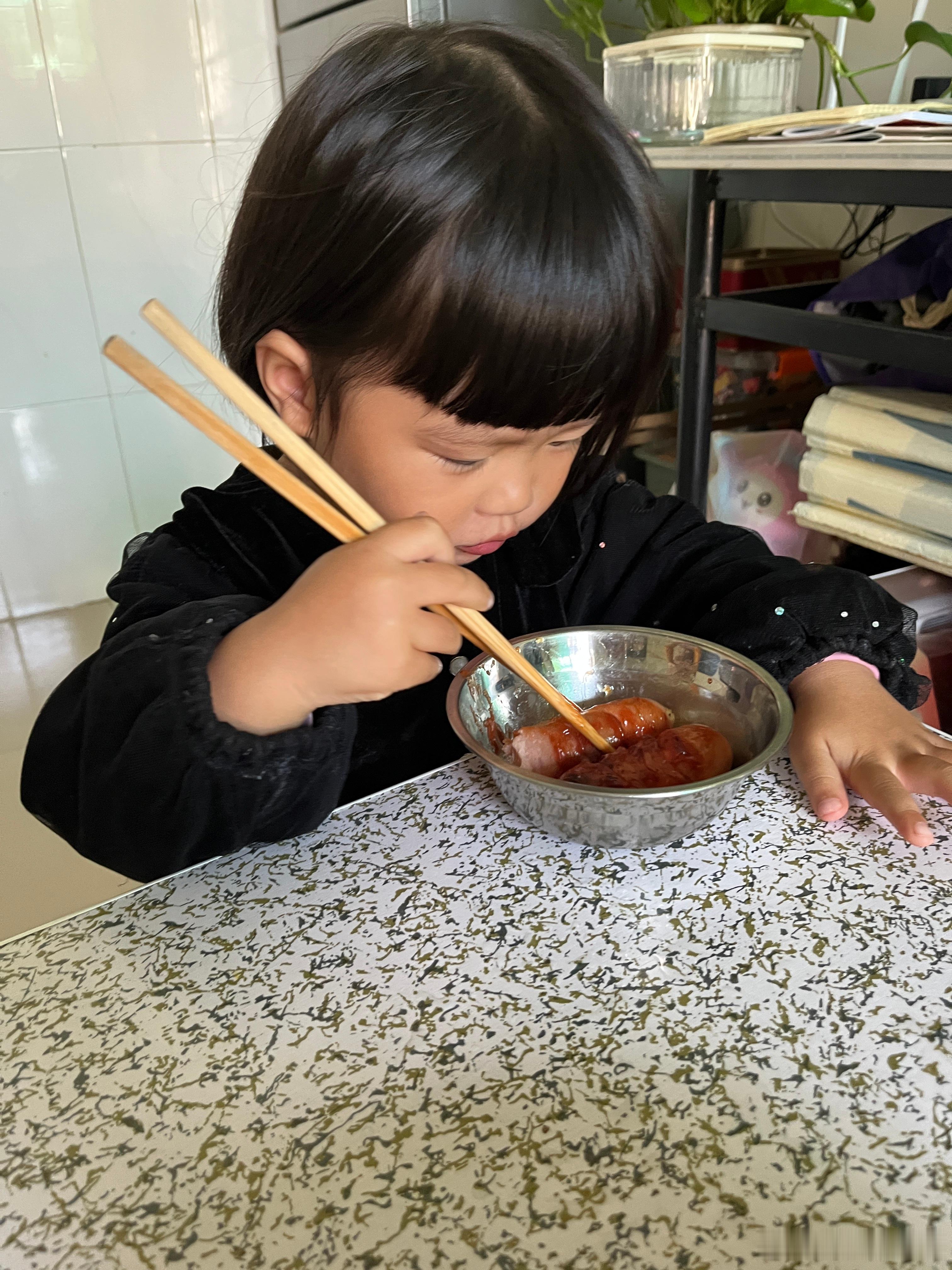 吃早餐了,给她煎了两条烤肠,放了番茄酱,上次吃那个烤肠,把人家番茄酱都舔玩,没眼看之前她都不吃番茄酱的,看来是一个阶段性的。张柏芝自曝患数字恐惧症第一次听说。