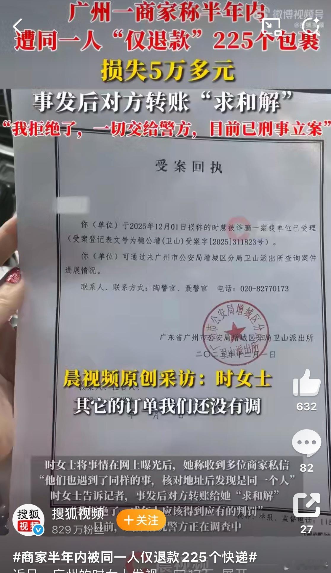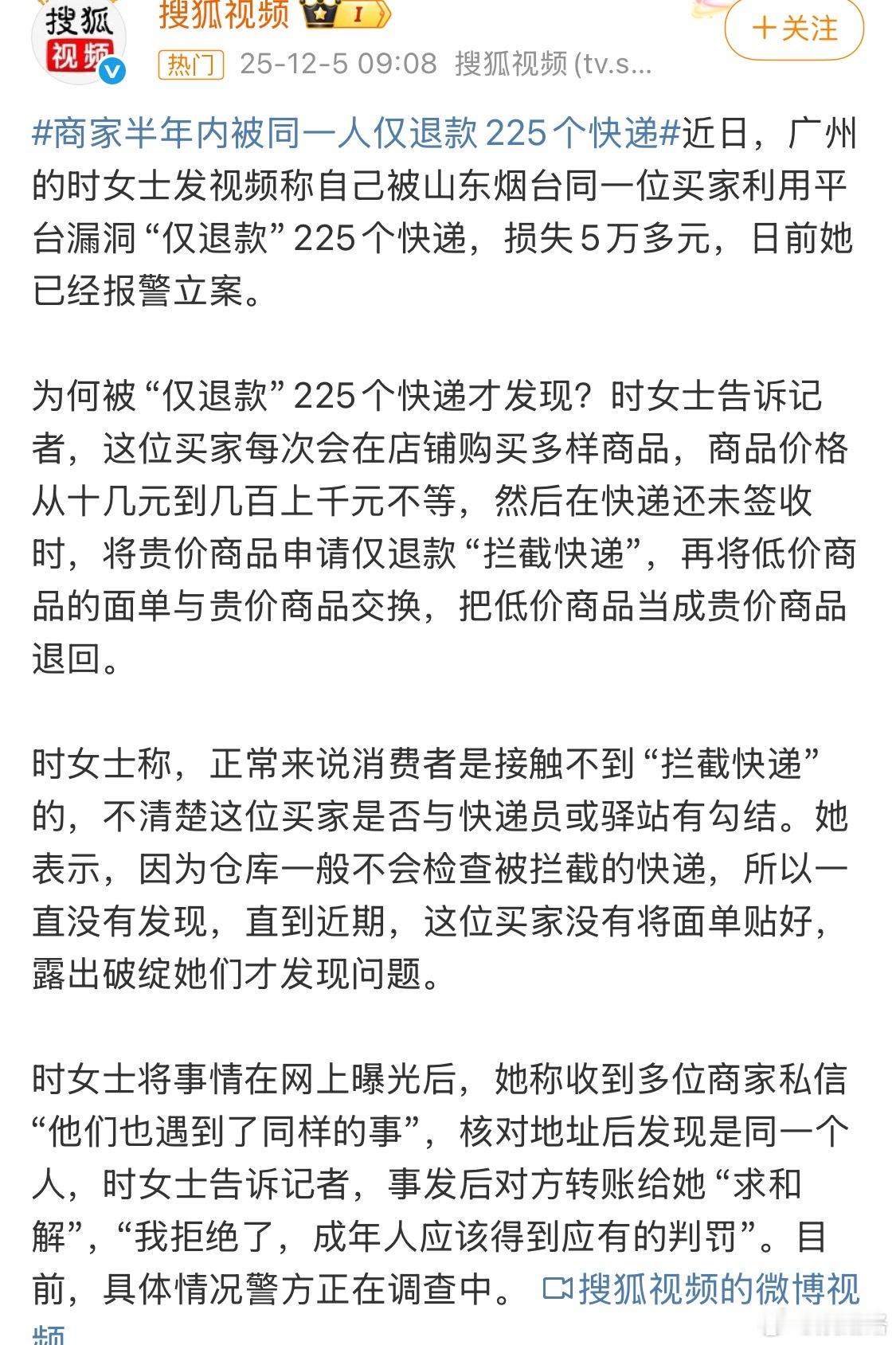 仅退款225个包裹后向商家转账求和解我天这个仅退款225个包裹真的很过分啊他以次充好,把便宜的东西当成好的东西退回去。不仅伤害商家,还伤害其他的消费者。别人有可能花高价钱买到了他退回来的次品,好生气😠而且最重要的是他仅退款的次数多了,这样的人多了,商家的经营成本就高了,为了活下去,商家肯定会提高价格,以维持利润。又是我们普通消费者跟着一起倒霉有没有人来为我们发声啊我还听说有的商家会通过大数据找到退款率低的客户,把一些含瑕疵的产品发给他不知道真的假的仅退款225个包裹后向商家转账求和解