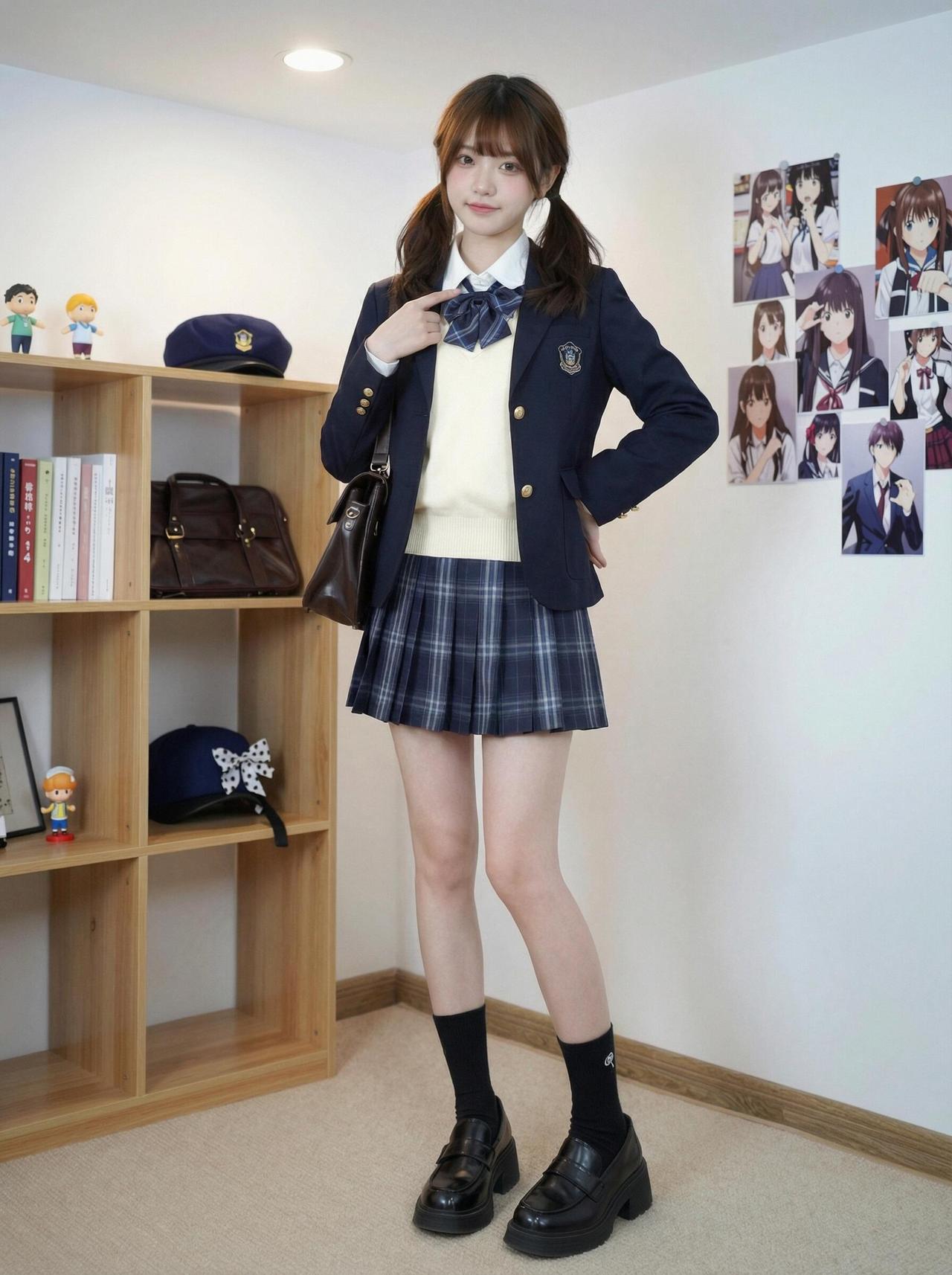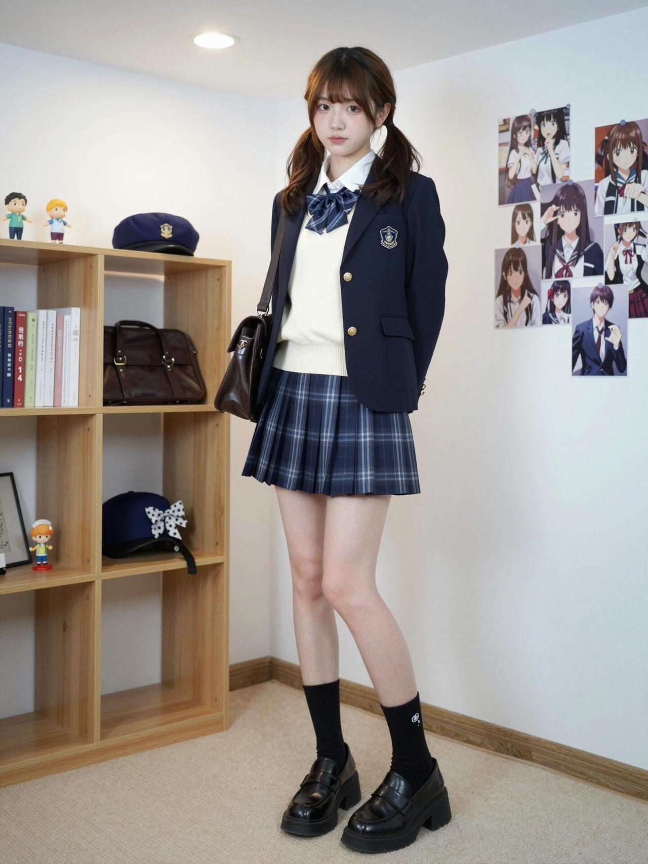 校园OOTD|深蓝西装+蓝格裙,初恋感拿捏了✨