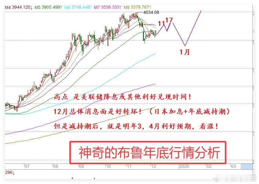 周6,3大利好袭来,下周A股怎么看,我来泼冷水了!利好确实很多,算3大利好吧,1.险资入市再获松绑!股市望迎千亿资金,2.还有昨天美联储12月降息预期加大,美股和中概股都是涨的,3.下周开始进入到重磅会议预期时间!市场有望炒作会议预期!但是我认为反弹力度有限,本来我想着写个5天涨跌预判,但是怕误导大家,改成泼冷水,提醒风险!1.12月大概率是好转坏,因为开始有美联储降息,2个会议,但是后面这些利好结束后,就是日本央行可能的加息!2.年底大股东减持没有结束。昨天很多公司公告减持的!3.技术面看,这波反弹到17日附近,还有一次破新低的回踩!3816点!当然后面就是一马平川,我觉得有一波大涨了!4.另外后面时间点很显然就是会议的时间点,比如11日美联储降息的时间点,比如18日 日央行加息的时间点,还有没公布会议的时间点!这些时间点预防利好兑现和突发利空!