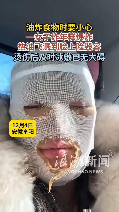 悲剧还是发生了!12月4日,安徽阜阳,一女子嘴馋想吃炸年糕,于是找出冰箱里的年糕,化了一天冻后放进锅里炸,没想到年糕突然爆开,滚烫的热油瞬间溅到女子脸上和手上!目前仍在治疗中。网友:应该是年糕里面水分太多。 对于吃的东西,很多人都非常讲究,而且现在人们都重视健康,喜欢自己在家里面做好吃的,但大家在用火、用油时,一定要注意安全! 前几天,女子突然想吃炸年糕了,正好家里面就有年糕条,于是她一大早就拿出来化冻,到了晚上时,女子觉得年糕已经化得差不多了,于是就起火烧油。 见油的温度已经上来了,女子就将年糕条一根一根的放进去,可是还没等她全部放完,锅里的年糕就发生了爆炸!大量热油溅到女子身上,疼得她哇哇大叫。 好在女子惊慌过后很快就镇静下来,她接了一盆凉水,将被烫到的地方放进水中冷却,随后又拿了些冰块冷敷,这才没有导致大面积的起水泡。 之后女子前往医院治疗,医生给开了些烫伤药,至于容貌会不会受损,医生也不能确定。 大家一定要吸取这次教训,不要将含有水分的东西放进热油锅中,这样做很容易让油溅射出来,搞不好还会引起爆炸! 信息来源:《12月4日(采访时间),安做界首。女子用自身经历提醒大家,年糕尽量不要用油炸:炸的时候年糕突然爆开,脸和手被热油烫伤。》国+社区