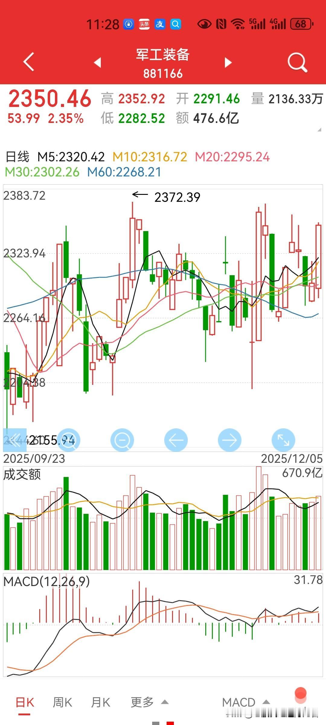 中期调整,为什么说只有拿着军工板块踏实? 几点逻辑: 1,首先,对于市场处于中期调整中,估计现阶段没什么人反对吧? 2,其次,历来牛市中的中期调整,活跃的板块不多吧? 3,最后,现阶段什么板块你敢追高,又或者可以抄底? 先暂停,以上三个问题,评论区打出来! 上面的三个问题老股民不回答,你们自己打出答案,老股民接着分析。 为什么只有拿着军工板块才踏实? 1,军工板块,最先调整,“9.3过后就开始了,调整提前到位,再向下破位的可能性低; 2,纵观所有板块,除了券商板块,还有什么板块涨幅并不算大,上涨逻辑又足够,调整又到位,市场人气值又足…还有谁? 可能有人说,不还有券商板块吗? 是,券商板块也比较符合,但,时机不对! 为什么这么说呢? 首先,技术上大双头的调整幅度及时间还差点意思; 其次,一有“慢牛”制约,二在其“高.氏”反.动之际,启动牛市主升浪,合适吗? 券商板块启动,要么用于“救.市”,要么用于启动牛市主升浪,这个时候启动,目的是什么? 所以,券商板块近期可以排除。 3,中期调整,时间和空间上都不够,这个大家应该基本认同吧? 那肯定追高、抄底是不是都合适,对吧? … 结论:如果有“大.事”发生,指数肯定有一个急速下蹲动,那么可以“避.险”的正是军工板块,最多可以加一个黄金; 如果市场正常整理,军工板块可能也是震荡上行,因为“大.势”所趋。