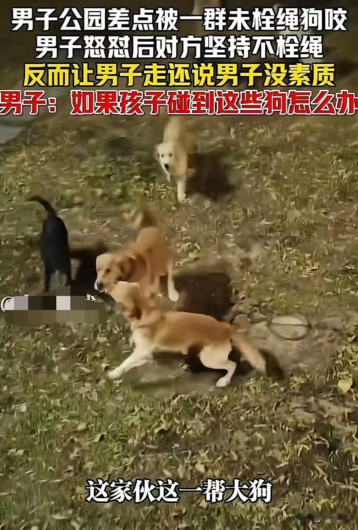 太没素质了!山东,男子在公园发现一群未拴绳的狗,差点就被咬。不信你看,明年开始狗