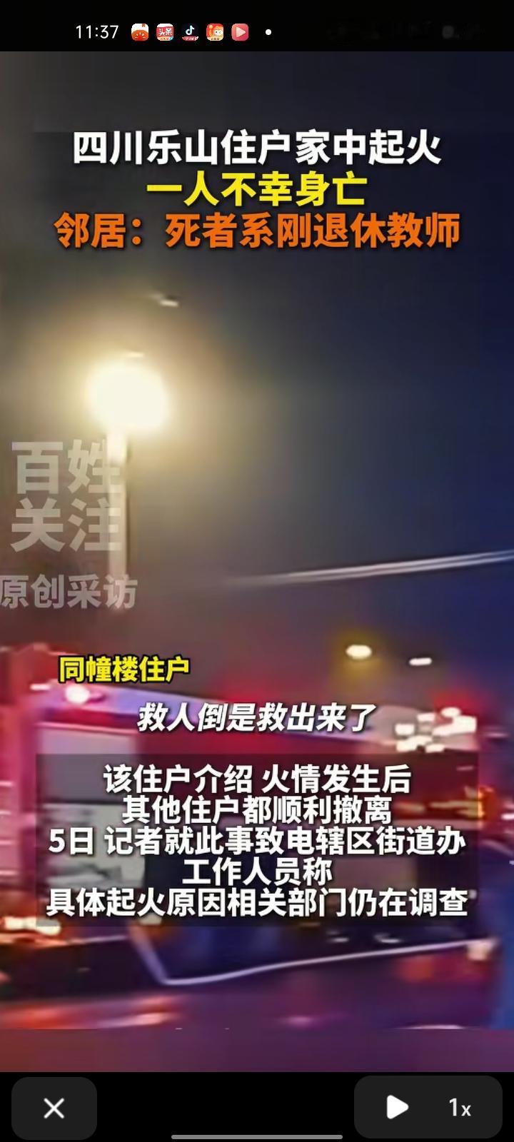 12月5日,乐山市夹江县建设北路一住户家起火,一人不幸身亡。事发楼幢住户回忆称,大概有四个开间的房子燃起来了,后面消防队来了,在底下有水枪往上面喷,然后破门进去。人是救出来了,但已经被火烧死了。死者是位退休女教师,刚退休不久。 辖区街道办工作人员表示,具体起火原因相关部门仍在调查。 但冬季本就是火灾高发期,干燥气候、用电用气需求激增等因素,让安全风险始终潜伏在日常细节中。就拿我来说吧,香港大埔宏福苑发生火灾,造成100多人遇难,小区物业看了就发到我们业主群,提醒我们不准在消防通道堆杂物间,也不能推电动车上楼。 多一次隐患自查,多一分应急准备,才能让类似的悲剧不再重演。