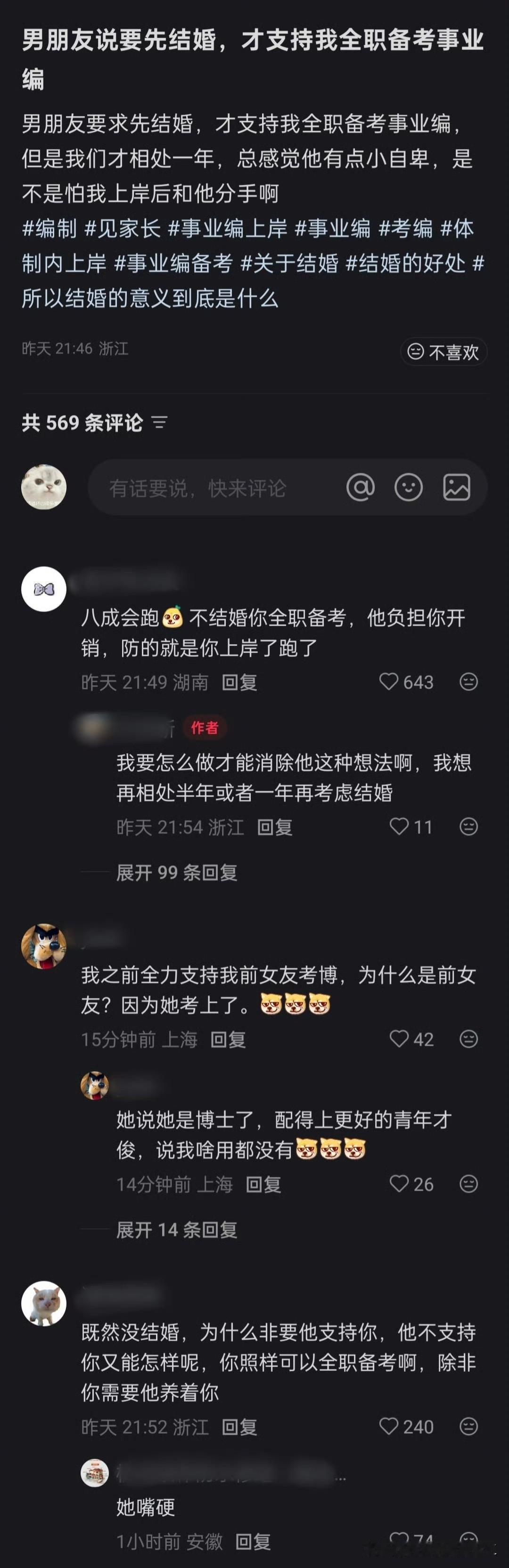 男朋友说要先结婚,才支持我全职备考事业编!