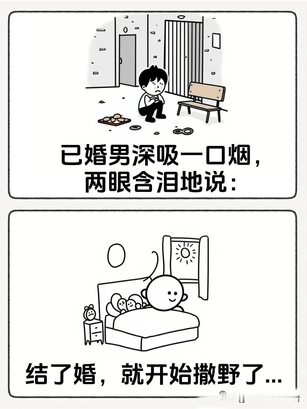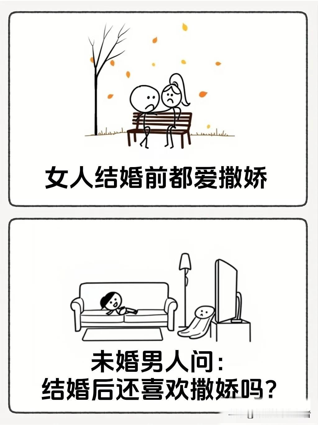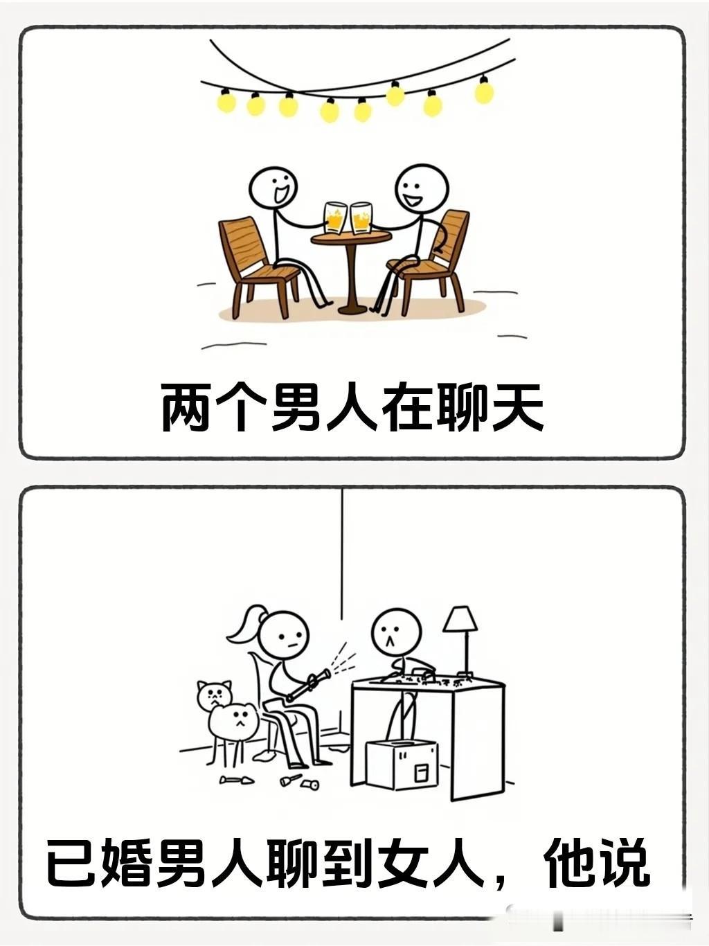 趣味漫画:两个男人在聊天,已婚男人聊到女人,他说女人结婚前都爱撒娇,未婚男人问:结婚后还喜欢撒娇吗?已婚男深吸一口烟,两眼含泪地说:...