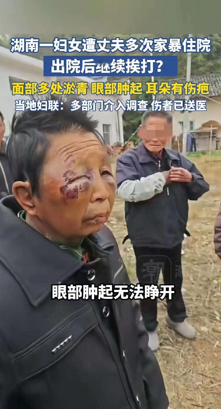 真的是被家暴打的连妈都不认识了。 我非常不理解,为什么有些女生,明明智力正常,却要忍受丈夫的家暴,除了孩子的原因,有一个潜在不可忽视的原因大家也可以帮女人开导一下,就是有些女人分不开丈夫,是因为夫妻生活非常和谐,有点上头,上瘾,恋爱脑,而且一般这种丈夫是她第一个,也是唯一一个男人。 这时候,我们应该教育她,换个不打你的男人,照样可以很舒服,完全没必要吊死在一棵树上。当然,下图湖南女子被打具体原因还有待公布。 真的很心疼,本来还想帮她眼睛马赛克一下,可是她眼睛在哪里都看不到了,就应该让大家看看这畜生给她下的狠手! 家暴