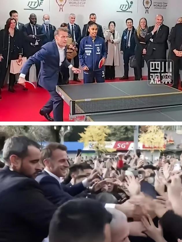 不仅法国,不仅中国, 全世界都知道了! 法国总统马克龙访华,居然连夜来到了成都,去了四川大学,还和王楚钦孙颖莎打球。 马克龙访华首站还是落在北京。作为大国之间的正式访问,官方安排当然少不了。 没人料到,北京的正式会晤会这么 “实在”。中法高层坐下来聊的,没有半句虚的。空客集团当场拍板,把天津总装线的产能提了三成,还要在华建 A350 宽体机交付中心 — 以后咱们坐飞机,说不定一半都是 “天津造” 的空客。 核能合作,不光接着运维台山核电站,还要联手搞小型模块化反应堆,欧洲能源危机还没喘过气,法国直接把压箱底的核能技术,跟中国绑在了一起。 经贸清单上的干货,能直接落到老百姓的生活里。法国的红酒、奶酪,以后通关速度再提速;四川的泡菜、云南的茶叶,摆进巴黎超市的货架更快。 教育领域,巴黎高商和上海交大搞了双学位,中国学生不用出国,就能拿欧洲顶尖文凭。这些签字的瞬间,不是冷冰冰的协议,是真金白银的互利。 更绝的是气候变化的合作。马克龙没扯 “碳减排” 的大空话,直接拉着中国组队,去非洲萨赫勒地区建光伏电站。用中国的光伏板,配法国的电网技术,给缺电的非洲送去稳定电力。 这步棋一走,非洲国家拍手叫好,欧盟内部也炸了 — 毕竟之前总有人酸 “中国在非搞扩张”,现在法国亲自站台,谣言不攻自破。 北京的议程刚收尾,马克龙的专机就降在了成都。谁都知道成都是 “天府之国”,但很少人清楚,这里是中法合作的 “隐藏高地”。 川大早在八十年代就开了西南第一个法语专业,现在更是中法联合科研的重镇,生物医药、农业科技领域的成果,早就卖到了法国。 马克龙一进川大校园,就被学生围得水泄不通。他没摆总统架子,站在礼堂台阶上跟大家唠嗑,说 “2024 年是中法建交 60 年,年轻人要多来往”,还宣布掏钱包设 “青年科研基金”,资助两国博士生一起搞研究。 最燃的是乒乓球台边,他握着球拍跟王楚钦对拉了两板,虽然动作略显生疏,但赢来满场欢呼 — 这哪是外交场合,分明是邻里间的友好互动。 这场 “突然的成都之行”,藏着法国的小算盘。成都作为西部航空枢纽,跟法国的航空城图卢兹刚好配对。空客天津总装线的零部件,以后说不定就从成都的工厂运过去; 法国的航空发动机技术,也能借着成都的区位优势,辐射整个东南亚市场。生意做到这份上,才叫双赢。 马克龙这趟中国行,把欧盟的 “分裂” 摆上了台面。德国急着抱中国市场的大腿,却又怕被美国骂;东欧国家跟着美国喊 “去风险”,转头就把自家农产品卖到中国; 只有法国敢站出来,既签硬核协议,又玩亲民互动。说白了,这不是鲁莽,是清醒 —中国是全球第二大经济体,更是法国航空、核能产业的 “救命稻草”,不抱紧不行。 从北京人民大会堂的签约笔,到川大校园的乒乓球拍;从空客的飞机蓝图,到法国红酒的橡木桶; 马克龙的访华之旅,把大国合作的样子,活成了大家喜欢的模样 ,不勾心斗角,不摆花架子,有生意一起做,有文化一起玩。 现在全世界都在传:跟中国打交道,学法国就对了。这趟跨越亚欧的旅程,不仅让中法关系更铁,更给混乱的世界提了个醒,合作从来都不是选择题,而是必答题。而马克龙,用一场充满烟火气的外交,交出了最完美的答案。