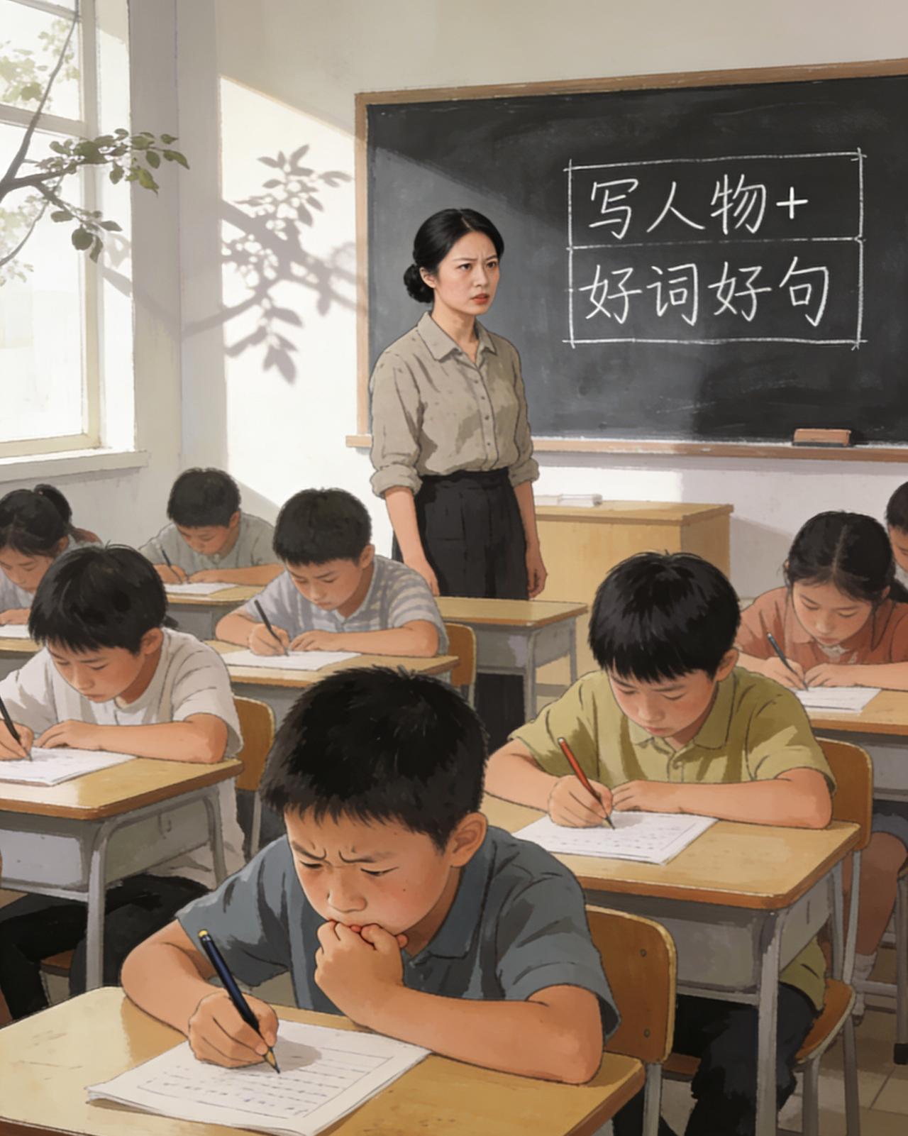 三年级小朋友写作文,一写到老师,就是辛苦呀、伟大、崇高、无私、燃烧自己、照亮别人,是语文老师教的么? ------------------------------------ 这事儿不能全怪语文老师,三年级刚开始学习写作文,老师开始给孩子们搭一个框架而,而“写人物”加“好词好句”就是最基本的了。 其中辛苦、伟大等词是入门级的“安全词”最容易快速上手,毕竟这么写也没错,但确实容易教出千篇一律的八股文。 其实三年级小朋友眼里的老师,本该是“上课会变魔术讲生字”,“批改作业时会用红笔写笑脸”——这些具体的小细节,才是真的生动。 可惜很多孩子没被引导着去观察生活里的老师,只能抓着课本里的“蜡烛比喻”凑字数。 与其说老师教得“套路”,不如说作文课缺了点“让孩子说真话”的空间。 你看我家孩子写的《学校到底是谁的家?》 「开学第一天,老师说学校是所有人的家,大家都要尊重他。 有人在上课睡觉时,老师说学校是你的家吗?睡什么睡,学校又不是你的家。 值日生打扫卫生时,老师说学校是大家的家,要打扫干净点儿。 这时候,学校又是所有人的家了?我有点儿不明白,学校到底是谁的家?」 这样的作文能让老师看吗?还好他只是一年级的孩子,自己写着玩儿。 要是能让孩子写写心目中真正的真实的老师,估计作文会更生动形象多了,不过这样往往又不符合要求了,实在无奈啊。