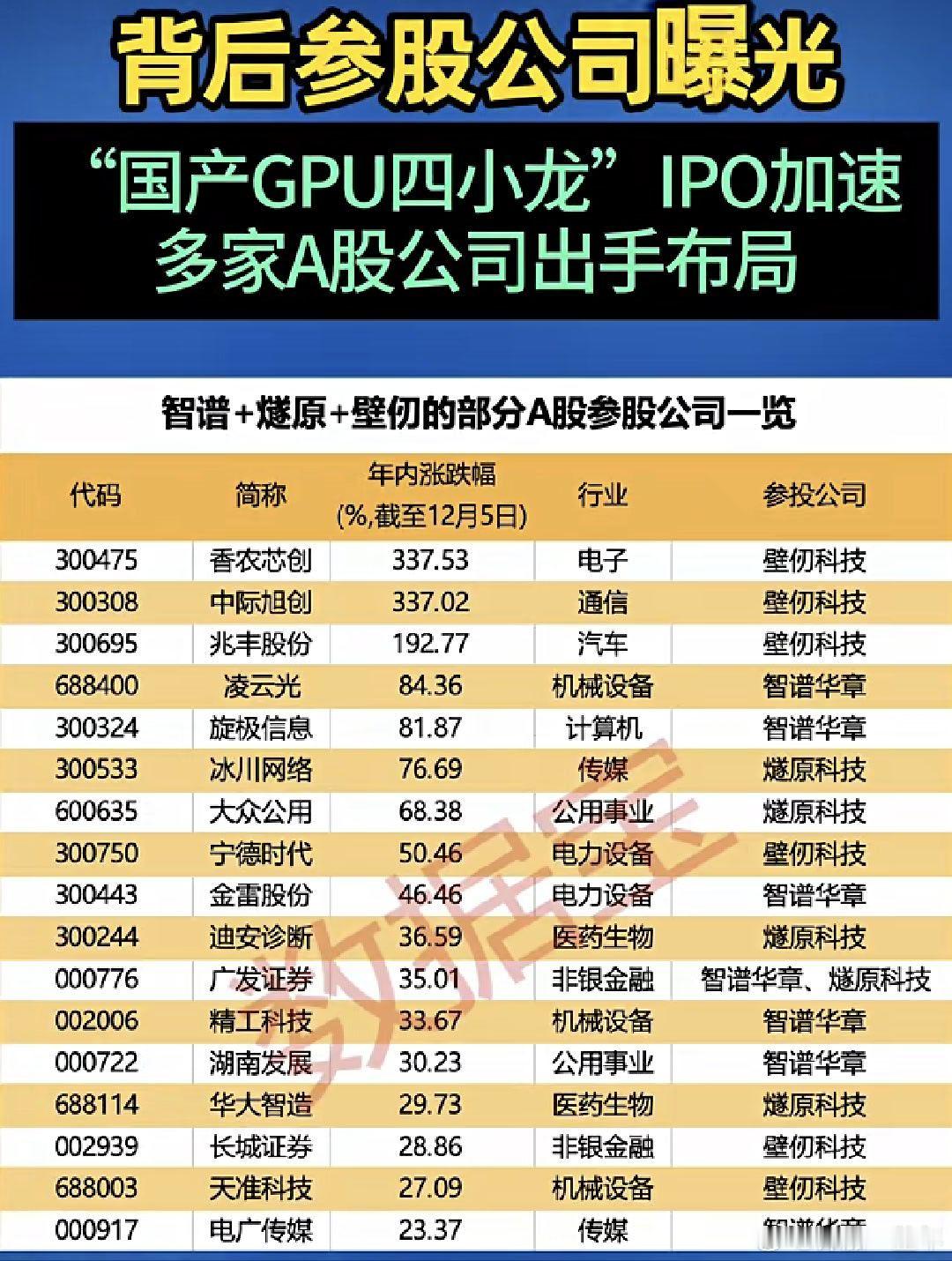 布局国产GPU四小龙的上市公司名单A股