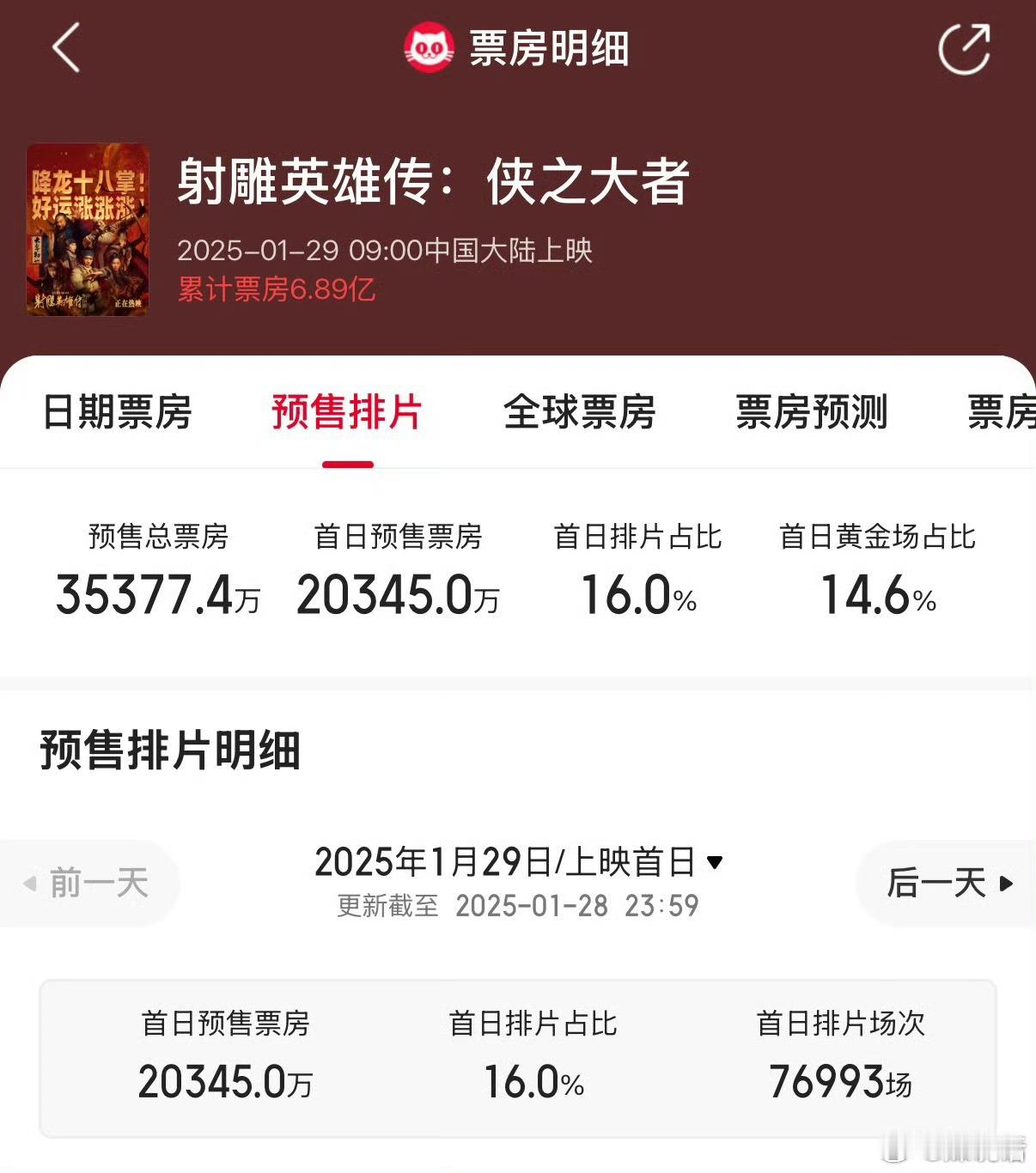 得闲谨制票房倒挂 这么看肖战的路人票房号召力还是不太行?春节档《射雕英雄传侠之大者》预售票房3.5亿,最后总票房6.89亿。这回《得闲谨制》粉丝预售1.5亿,刚上映几个小时票房就开始倒挂了