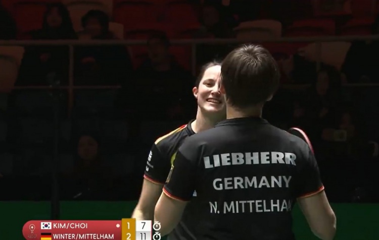 第五盘:金娜英/崔孝珠1-2温特/米特兰姆[11-9,9-11,7-11]