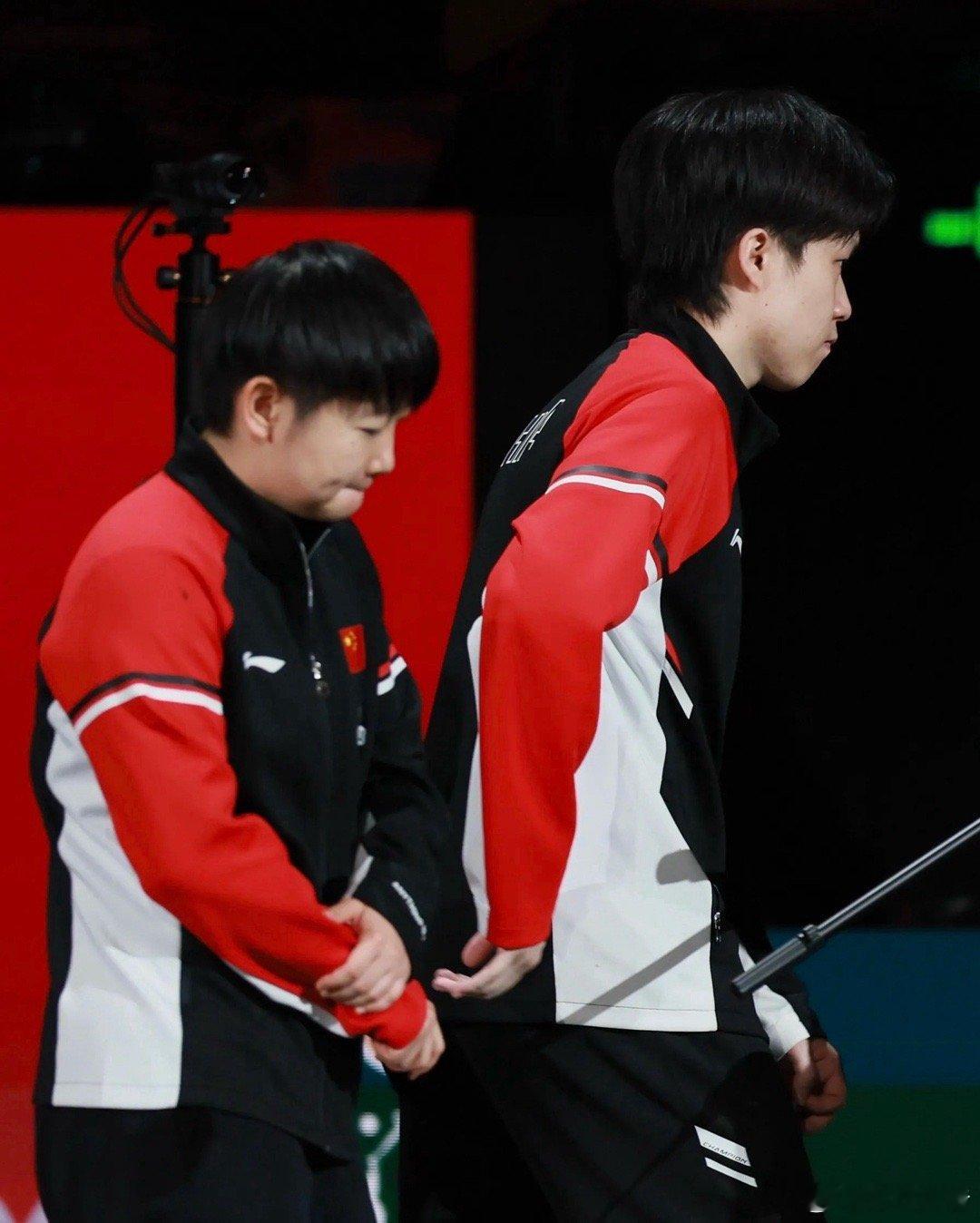 成都混团世界杯赛场突发小插曲!王楚钦一记大力回球意外击中身旁的孙颖莎,莎莎瞬间瞪大双眼、嘴微张的可爱表情被镜头精准捕捉。下一秒王楚钦下意识低头擦球台,孙颖莎立马默契跟上同步动作,全程零交流却完美化解尴尬。这就是八年搭档刻进DNA的默契吧,失误都成了圈粉名场面!