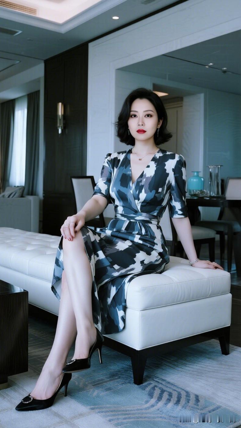红妆美人坐,风姿绰约间。女人的外貌非常重要吗 优雅气质,黑白迷彩连衣裙,时尚高跟鞋,都市女性风范。