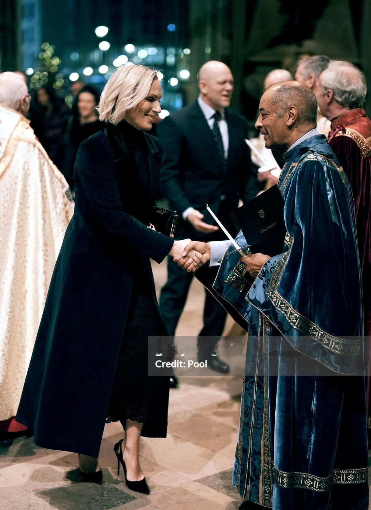 2025年12月5日,扎拉廷德尔和迈克廷德尔在伦敦威斯敏斯特大教堂参加凯瑟琳王储妃主持的圣诞颂歌音乐会🎄扎拉和苏菲是唯2️⃣会全力支持圣诞颂歌5️⃣年的王室成员,迈克参加了3️⃣次。 汉娜沃丁厄姆原定于在圣诞颂歌音乐会上演唱《严寒的仲冬》,由于跑电影通告跑得嗓音受影响,她只能放弃出演,选择成为观众。