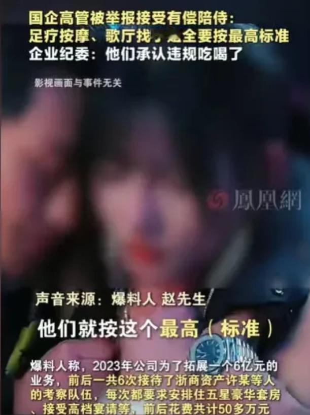 浙江,男子就职的公司,为了一个6亿元的业务,他们接待了一个国企的高管考察队,他们吃喝玩乐,有新高度,不但去足疗按摩,还要到KTV找失足女,要她们有偿陪侍,除此之外,他们要喝茅台,吃高档美食,住五星级豪华套房,来了6次,他们花了50多万,其中一个高管还暗示要巨额好处费,他们拒绝了,结果项目就黄了,于是男子爆料。 网络上关于“饭局文化”、“应酬套路”的讨论一直没断过。可再怎么说,也很少有像浙江这家公司的遭遇,能让人一边觉得荒唐,一边又咂摸出一股无奈。 说实话,普通人想象中的商务接待,顶天了也就是安排几顿好饭,住个体面点的酒店,顶多再送点土特产。 可据这位爆料男子说,他们公司为了这6个亿的生意,接待的标准可以说已经“卷”到天花板了。国企高管一行人前后来了六次,每次都是“满汉全席”级别的招待。 吃的喝的绝不含糊,茅台是标配,高档菜一桌接一桌。住的更是五星级大套房,房间里啥都有,比自家还舒服。 饭后节目也很有“层次感”,先是足浴按摩放松一下,接着去KTV“娱乐”,还得专门安排“有偿陪侍”小姐,全方位照顾高管们的“情绪管理”。 据说有一次,甚至高管还直接开口,“今晚要安排点特别的,得有姑娘陪着唱歌喝酒。”这要求要是搁二十年前,可能还有人觉得“稀罕”,现在可真是见怪不怪。 只不过,这种玩法早就不是“创新”,而是“惯例”了。一个项目,光应酬就砸进五十多万,这还只是明面上的花销。 高档美食、茅台、五星级房间这些都能开发票,KTV包间、足浴、陪侍,八成只能“另算”。按理说,花这么多钱,总该有点“回报”吧? 可现实是,钱花了,心也操碎了,项目却还是黄了。更让人唏嘘的是,这事里被消耗的不光是钱,更是普通人的尊严。 想想看,公司里的员工们为了留住客户,不得不陪着喝酒、唱歌、熬夜,甚至还要帮着安排各种“特殊服务”。 有些员工明明嘴上说“无所谓”,但心里都明白,这种应酬,早就超出职业道德底线。说到底,这种接待已经不是“正常竞争”了,而是明目张胆的“谁更舍得下本”。 你不配合,对方就冷着你;你配合得好,才有机会“谈业务”。公司里不少人心里明白,这哪是做生意,简直就是一场“豪赌”。花了钱,未必见得有回报;不花钱,生意肯定没戏。 说到最让人气愤的,其实还不是那些花天酒地的花销,而是国企高管临走时的“暗示”。据爆料者说,对方高管悄悄提了一嘴: “兄弟,这项目这么大,你们要是懂点规矩,咱们都好做事。”翻译成人话,就是“该送的钱得送到位,不然你们努力都是白搭”。 这话一出,谁都懂了。前面六次接待算什么?那只是“开胃菜”。真正的“大餐”,是要直接打到高管的腰包里。 说白了,这种做法在商业社会并不稀奇,尤其是在一些“审批权”集中的行业。高管一句话,能让一个项目起死回生,也能让一个公司血本无归。 可问题是,这种“好处费”哪来的?最终还不是落在企业和员工头上。说到底,项目落空,最难受的还是那些为公司拼命付出的打工人。 本来大家还幻想着,“辛苦一场,业务做成了,年底分红能多拿点。”现在倒好,钱也花了,脸也丢了,项目还没落到手,连老板都直呼“亏麻了”。 这事一曝光,网上各种评论就来了。有的说,“敢爆出来,说明这公司骨气还在,不愿同流合污。”也有的说,“现在社会就是这样,谁敢不陪,不懂规矩就只能吃亏。” 其实,很多网友表面上是“看热闹”,心里却都在琢磨:这年头,谁还没被“应酬文化”折腾过? 不少中年网友留言,“我们年轻时也觉得自己能守住底线,后来才知道,竞争这么激烈,不陪不送根本混不下去。” 还有人说,“公司每年光是应酬就得花掉一大笔,员工都快成‘服务员’了,哪还有心思搞业务?” 说到底,这种风气,大家都知道不对,可谁都没勇气第一个站出来“说不”。企业怕丢项目,员工怕丢饭碗,官员怕“树大招风”,一环扣一环,最后全社会都成了“看客”。 大家都想凭实力吃饭,可现实是“关系”经常压倒一切。有人说,做生意本来就要“八面玲珑”,可八面玲珑和“失去底线”不是一码事。 生意场上,拼的应该是能力和诚信,不是“谁更能喝、谁更能送”。希望有一天,做实业的、做管理的,都能堂堂正正、光明磊落地谈合作,而不是被“酒桌文化”和“灰色交易”绑架。 参考资料: 《国企高管被举报接受高档宴请、KTV有偿陪侍,通报:三人已停职》——新民晚报